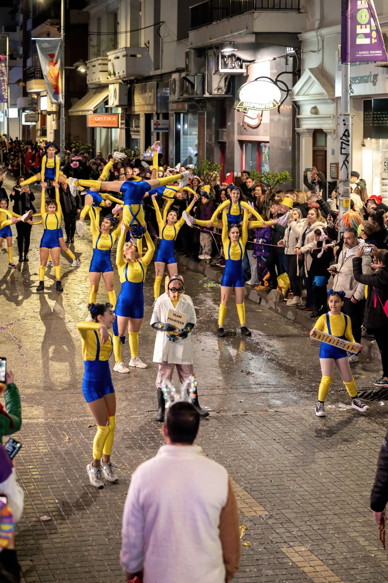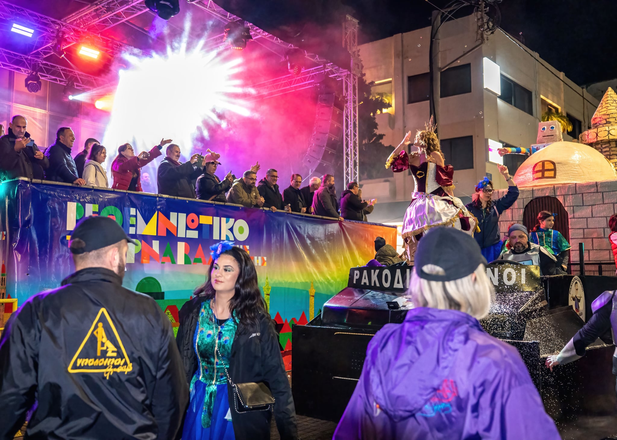 Το κοινό υποδέχθηκε τον Βασιλιά Καρνάβαλο σε μια φιέστα που περιελάμβανε λαμπερά άρματα, εντυπωσιακούς μασκαράδες, δυνατή μουσική και αδιάκοπο χορό. Η συμμετοχή των θεατών ήταν μοναδική, δημιουργώντας μια ατμόσφαιρα γλεντιού που κράτησε έως τα μεσάνυχτα.