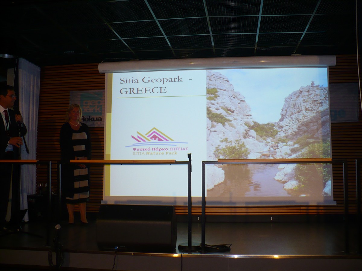 Η ανακοίνωση έγινε κατά την τελική λήξη του13ου Ευρωπαϊκού Συνεδρίου Γεωπάρκων από τον Δρ. Νικόλαο Ζούρο πρόεδρο του GGN Association, Συντονιστή του EGN και Διευθυντή του Απολιθωμένου Δάσους Λέσβου ενώ το δίπλωμα για την έγκριση του γεωπάρκου παρέλαβε ο Βαγγέλης Περράκης υπεύθυνος γεωπάρκου Σητείας παρόντων των: κ. Krökki Πρόεδρος Οργανωτικής Επιτροπής και Διευθυντής του Rokua Geopark, Jari Nenonen από την Γεωλογική Υπηρεσία της Φινλανδίας / Rokua Geopark.