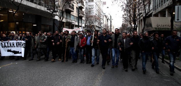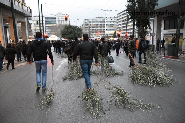 Το μεσημέρι τα πνεύματα ηρέμησαν και οι αγρότες ξεκίνησαν την πορεία στο Σύνταγμα με πρώτους τους αγρότες από την Κρήτη.
