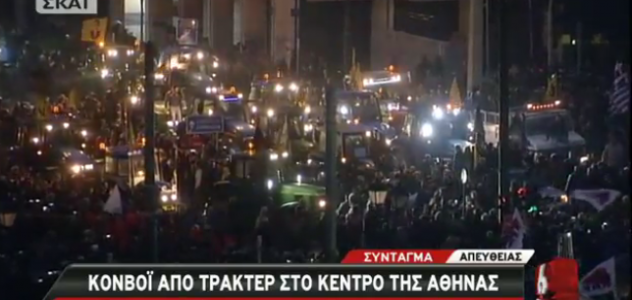 Το Συντονιστικό των αγροτών προτρέπει τα τρακτέρ να μην κινηθούν αλλά να μείνουν στην πλατεία, όπως ακούστηκε από τα μεγάφωνα