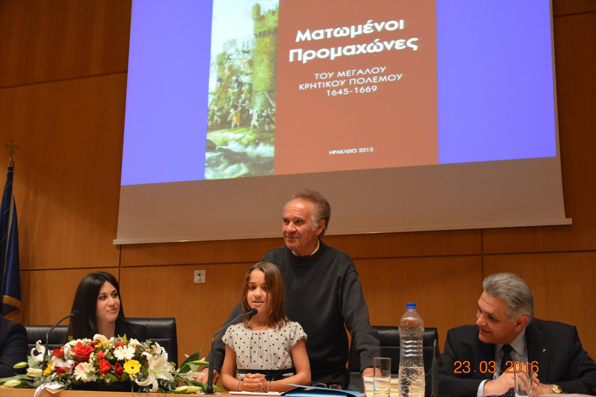 Χαιρετισμό απηύθυναν και ο Διευθυντής των εκδόσεων Ίτανος, κύριος Βαγγέλης Καρκανάκης και ο επικεφαλής του Ομίλου Συγγραφέων–Λογοτεχνών Ηρακλείου κύριος Κωνσταντίνος Καρτσάκης, ενώ μεγάλη προσέλευση υπήρξε και από τον χώρο της εκπαίδευσης και των γραμμάτων. Την ευχάριστη έκπληξη της βραδιάς, όμως, αποτέλεσε η τρυφερή παρουσία της μικρής Μαρίας, εγγονής του ποιητή και μαθήτριας τρίτης δημοτικού, η οποία απήγγειλε απ’ έξω μερικούς στίχους του ποιητικού έργου, προκαλώντας τον θαυμασμό και τη συγκίνηση όλων.
