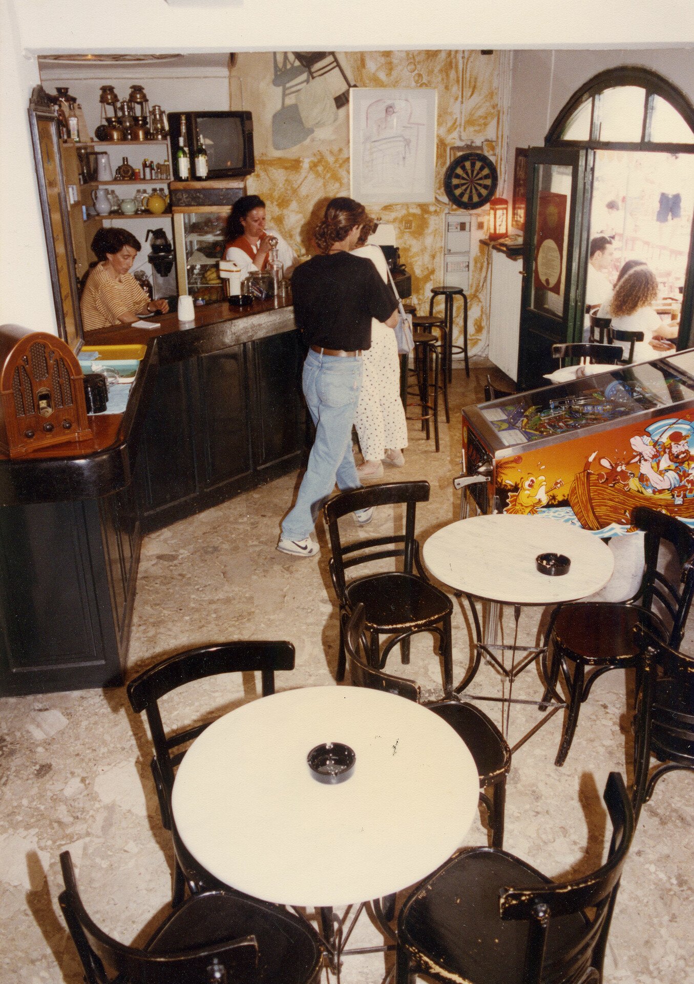 Δεν είχαν τα απαραίτητα χρήματα προκειμένου να πιάσουν μαγαζί πάνω στη θάλασσα, κι έτσι βρέθηκαν να λειτουργούν σε ένα ήσυχο και αδειανό από μαγαζιά στενό του λιμανιού, στη Σαρπηδόνος, που τώρα πια μπορεί να είναι πεζοδρομημένο και πολυσύχναστο, όμως τότε ήταν απλά στρωμένο με χώμα. «Έφερα τα δικά μου σερβίτσια από το σπίτι, ένα ροζ και ένα μοβ τσαγιερό, έφτιαχνα μόνη μου τα γλυκά, ένα σουφλέ σοκολάτας και κυδώνια με σαντιγί. Είχαμε επιλέξει διάφορες γεύσεις τσαγιού και οι Χανιώτες αναρωτιόντουσαν τι είναι αυτό που ανοίξαμε − ερχόντουσαν και το περιεργάζονταν».