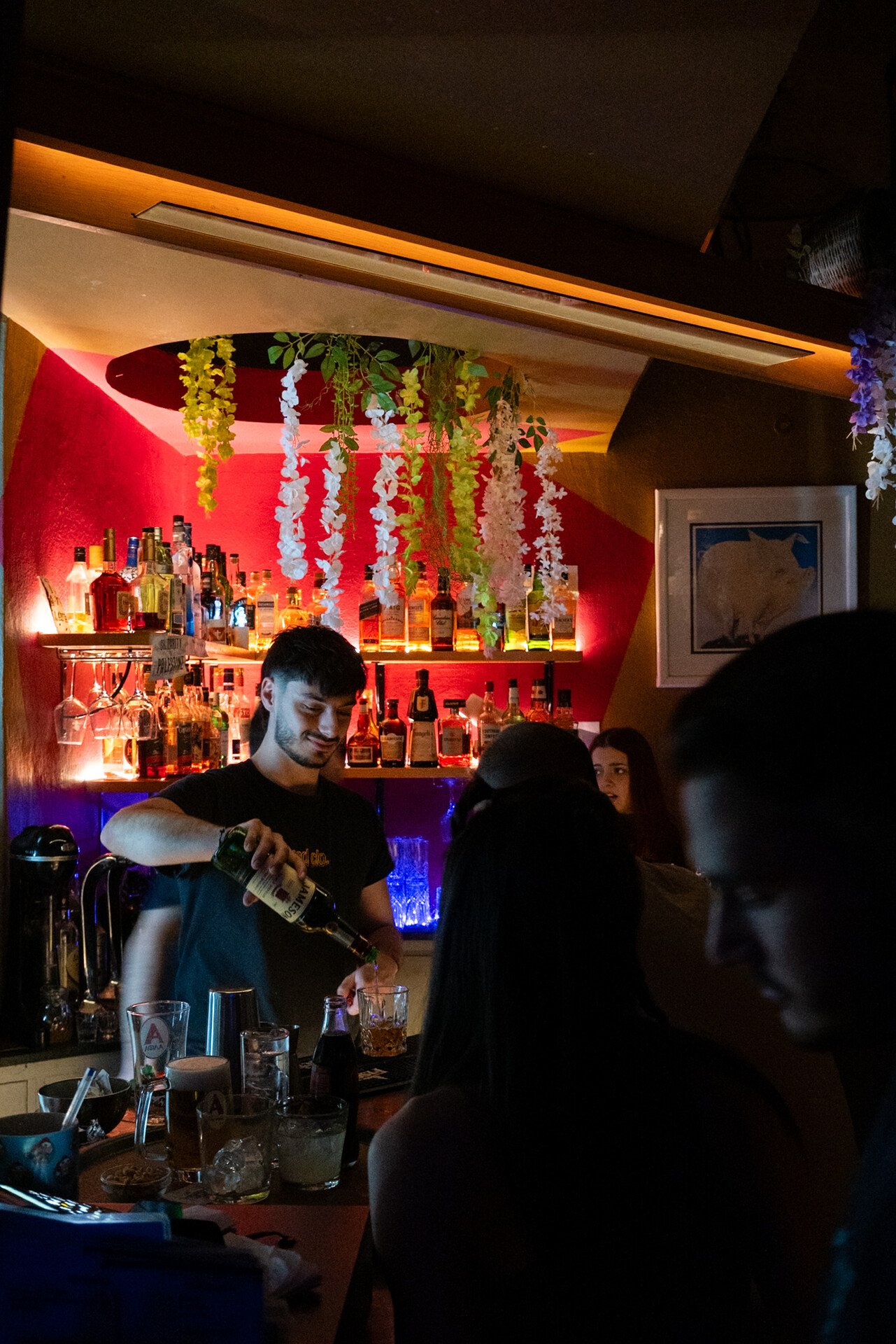 Το μαγαζί που άνοιξε τον δρόμο για να δημιουργηθεί μια πιάτσα στην Σαρπηδόνος είχε κάτι το ναΐφ και το αβανγκάρντ ταυτόχρονα. «Μια φορά πήραμε τη βάρκα ενός ψαρά, τη φέραμε μέχρι εδώ με ένα τροχήλατο, γράψαμε πάνω “Μαρία και Νίκος”, της βάλαμε κάτι ωραία υφάσματα και τη γεμίσαμε με φρούτα, μελομακάρονα και κουραμπιέδες. Και όπως ήταν μες στη μέση του δρόμου, περνούσαν οι ντόπιοι και τους παρακινούσαμε να κεραστούν. Κάποια άλλη στιγμή, ο Νίκος αγόρασε όλες τις μπανάνες από έναν πλανόδιο πωλητή, τις κρέμασε έξω από το μαγαζί και όποιος πέρναγε του έλεγε “πάρε μαχαιράκι, κόψε μπανάνα”· κάναμε διάφορα τέτοια, ήταν όμορφα χρόνια. Ή, αγοράζαμε έναν καλό πίνακα ζωγραφικής και τον κρεμάγαμε στο μαγαζί, έτσι που έμπαινε κάποιος και μας έλεγε “δεν το πιστεύω ότι έχεις Μποκόρο και Μαντζαβίνο στο μπαρ!”. Είχε ένα ρίσκο όλο αυτό, μας έχουν κλέψει μια φορά, αλλά τουλάχιστον υπήρξαν και αυτοί που το εκτίμησαν».
