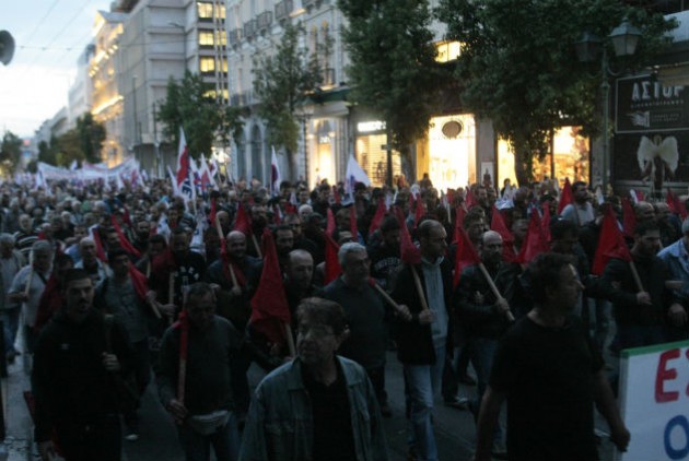 Κατά τις 6:30 μ.μ. ξεκίνησε η πορεία του ΠΑΜΕ προς τη Βουλή, που διαδήλωσε επίσης εναντίον του πορίσματος των «σοφών» που δόθηκε την Πέμπτη στη δημοσιότητα.