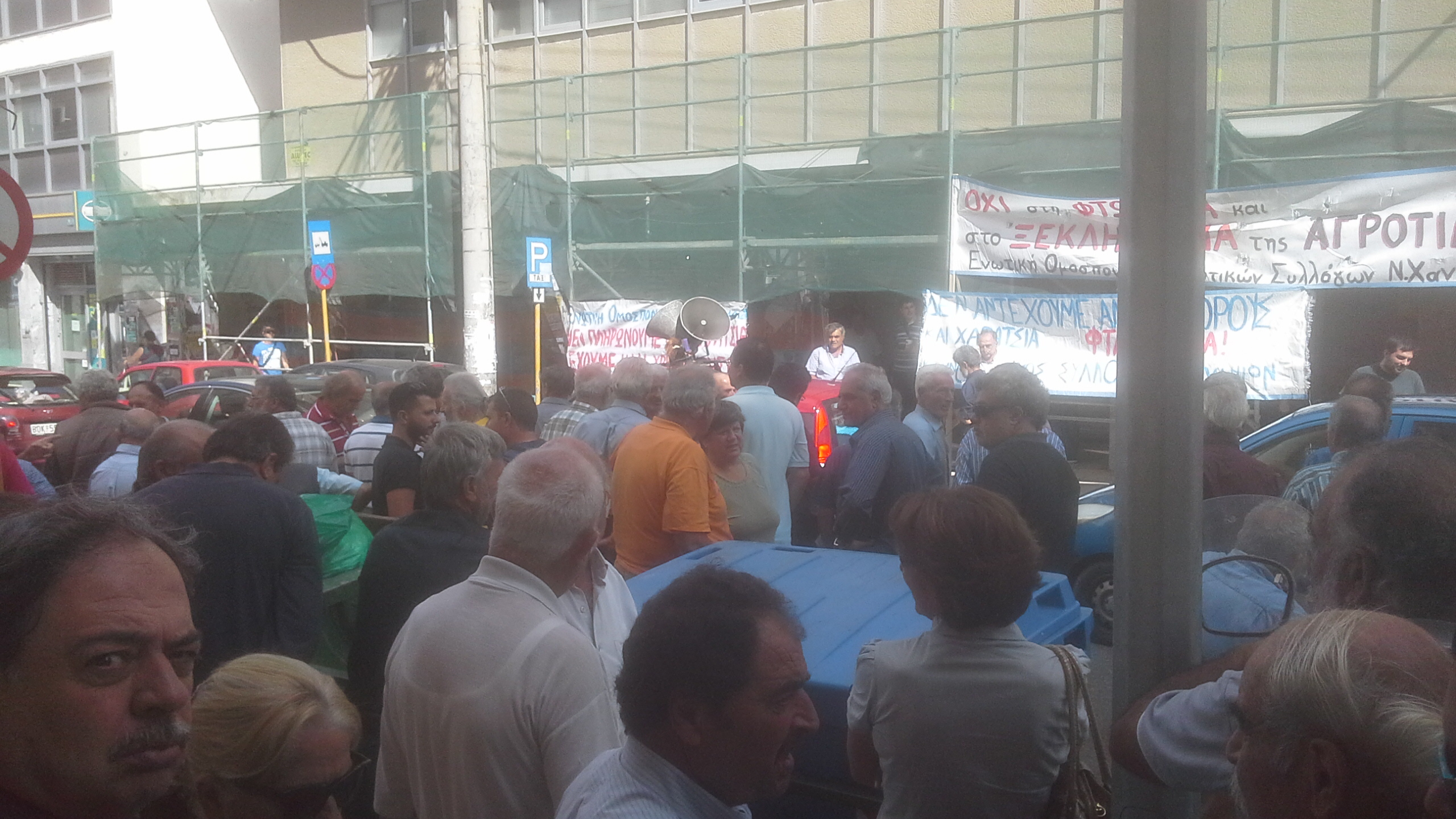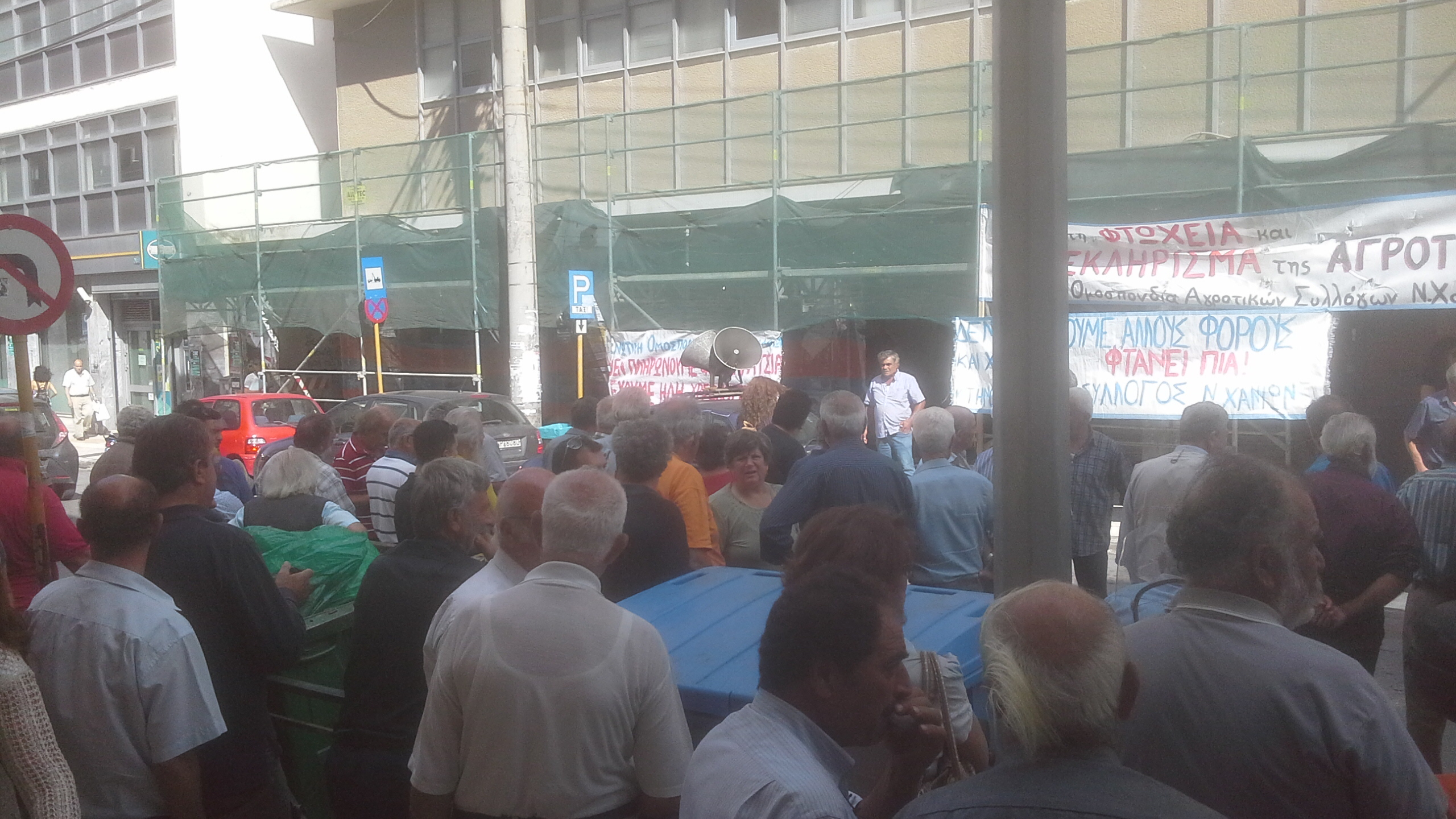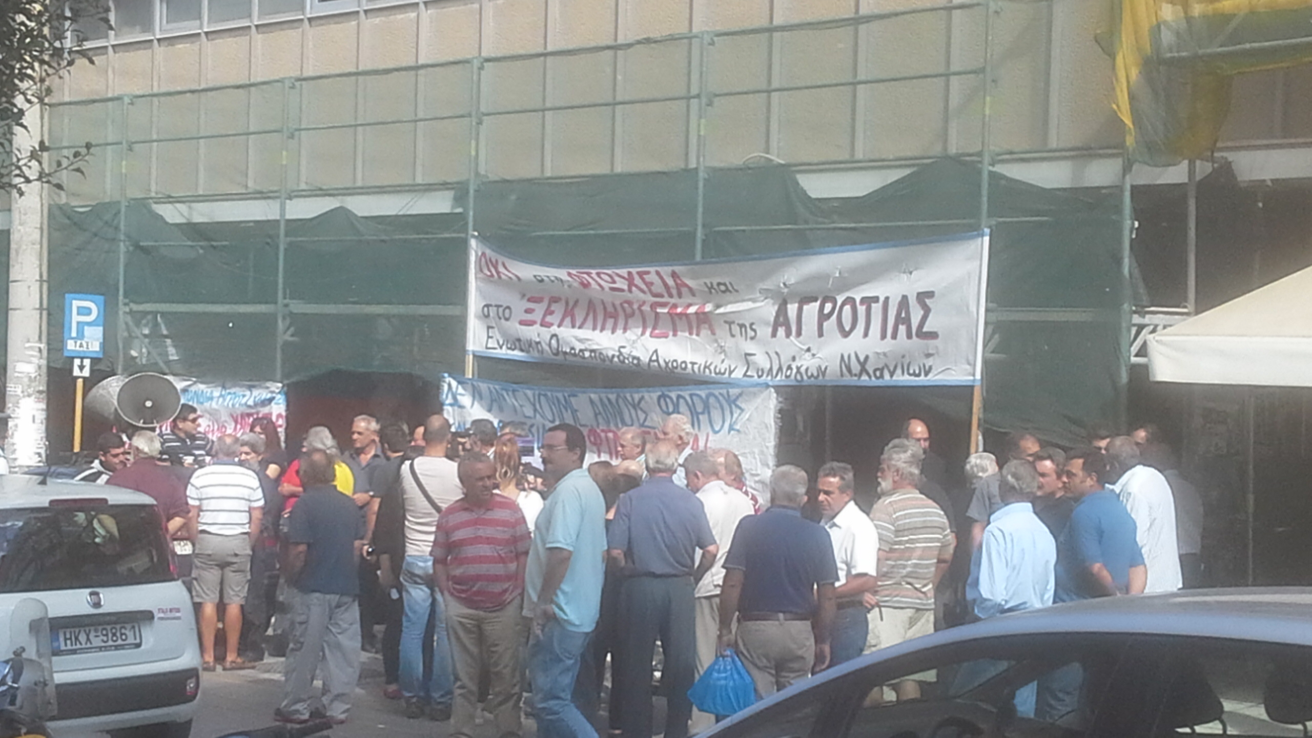 Εκατοντάδες ήταν οι αγρότες και οι κτηνοτρόφοι που συμμετείχαν στη διαμαρτυρία στην εφορία Χανίων την Τετάρτη. Ο προαύλιος χώρος αλλά και ο δρόμος γέμισαν με ανθρώπους που ήθελαν να εκφράσουν την αναγάνακτησή τους για τα νέα μέτρα ενώ επιδόθηκε ψήφισμα στα Υπουργεία Ανάπτυξης και Οικονομικών.
