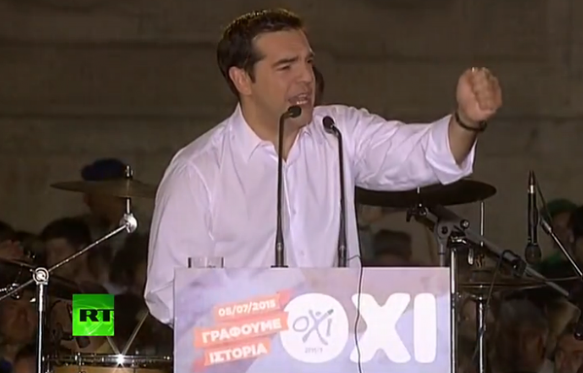 Σε μια μεγαλειώδη διαδήλωση παρουσία πολλών εκατοντάδων χιλιάδων πολιτών ο Αλέξης Τσίπρας μίλησε υπέρ του ΟΧΙ.