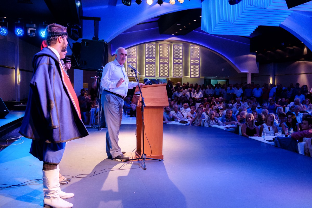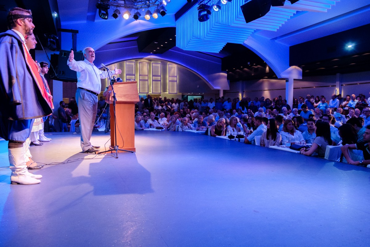 Το μενού περιελάμβανε καλτσούνια, γαμοπίλαφο, κατσίκι στο φούρνο και κρεατόπιτα αλλά και πολιτική συζήτηση με τον επίτιμο πρόεδρο της ΝΔ να σχολιάζει ότι όποιος πει την αλήθεια στο λαό δε θα χάσει.