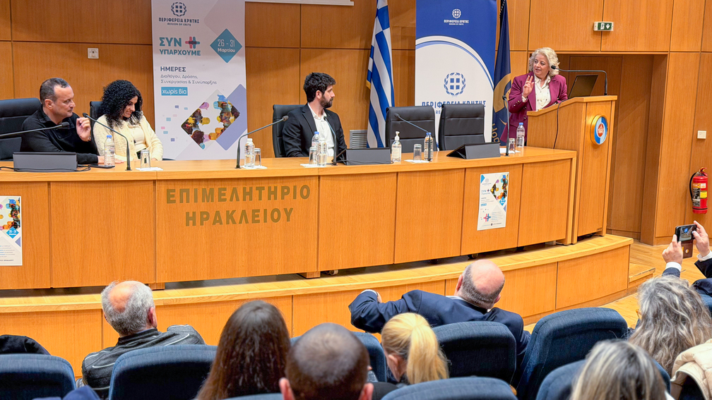 Με εξαιρετική επιτυχία και μαζική συμμετοχή εκατοντάδων μαθητών, εκπαιδευτικών και γονέων, ολοκληρώθηκε ο κύκλος δράσεων «ΣΥΝ-ΥΠΑΡΧΟΥΜΕ: Η Δύναμη της Ανθρώπινης Σύνδεσης». Η πρωτοβουλία της Περιφέρειας Κρήτης, σε συνδιοργάνωση με τον Δήμο Ηρακλείου, ανέδειξε την επιτακτική ανάγκη για ουσιαστικό διάλογο και κοινωνική συνοχή με επίκεντρο την πρόληψη της βίας.