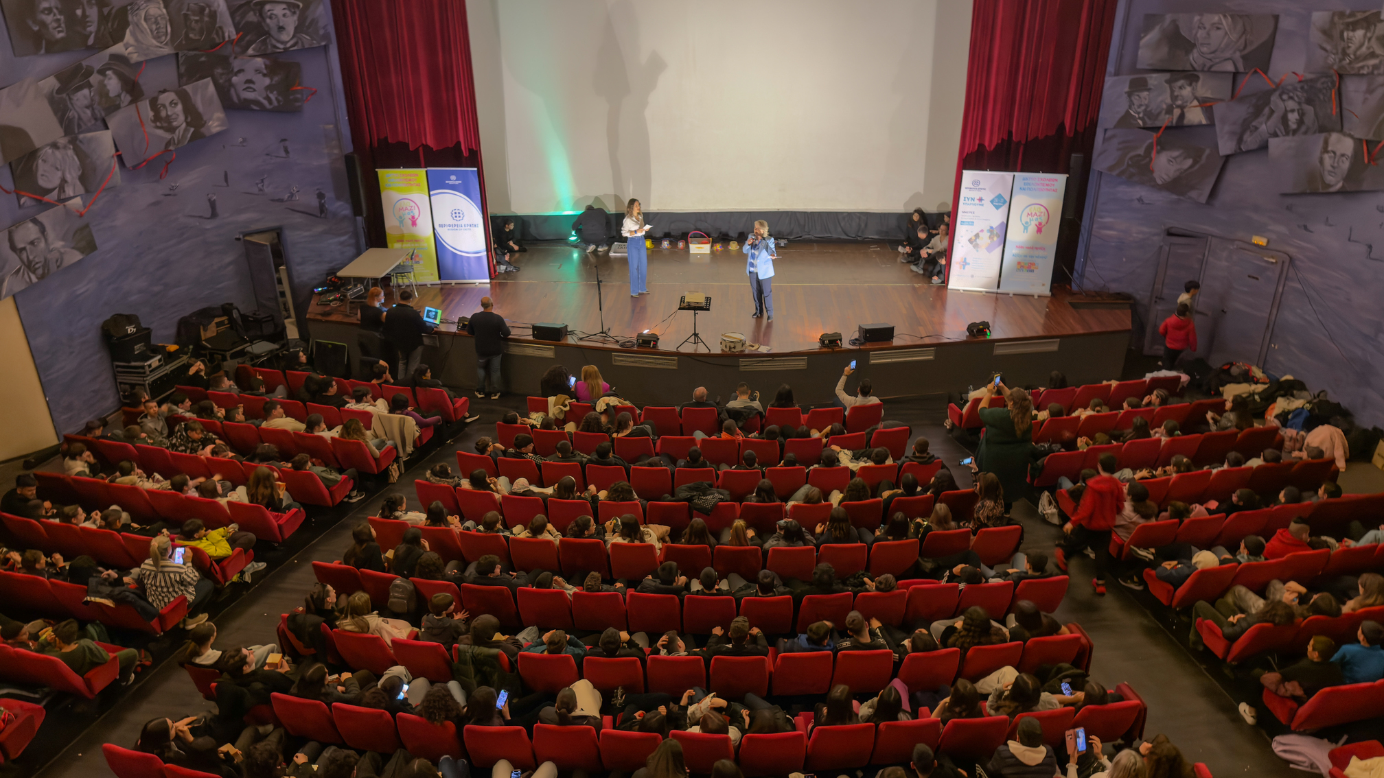 Ο κύκλος δράσεων κορυφώθηκε στην κατάμεστη αίθουσα του κινηματοθέατρου «Αστόρια». Οι Υπαστυνόμοι Κωνσταντίνος Γιαννουλάκης (Προϊστάμενος Γραφείου Προστασίας Ανηλίκων) και Κρίστα-Χριστίνα Σαμαρτζή (Ψυχολόγος ΕΛ.ΑΣ.), ενημέρωσαν τους μαθητές 14 σχολείων του Δικτύου «Έλα μαζί μας» για τους κινδύνους του διαδικτυακού εκφοβισμού και τις ψυχολογικές επιπτώσεις της μη ασφαλούς χρήσης του διαδικτύου.