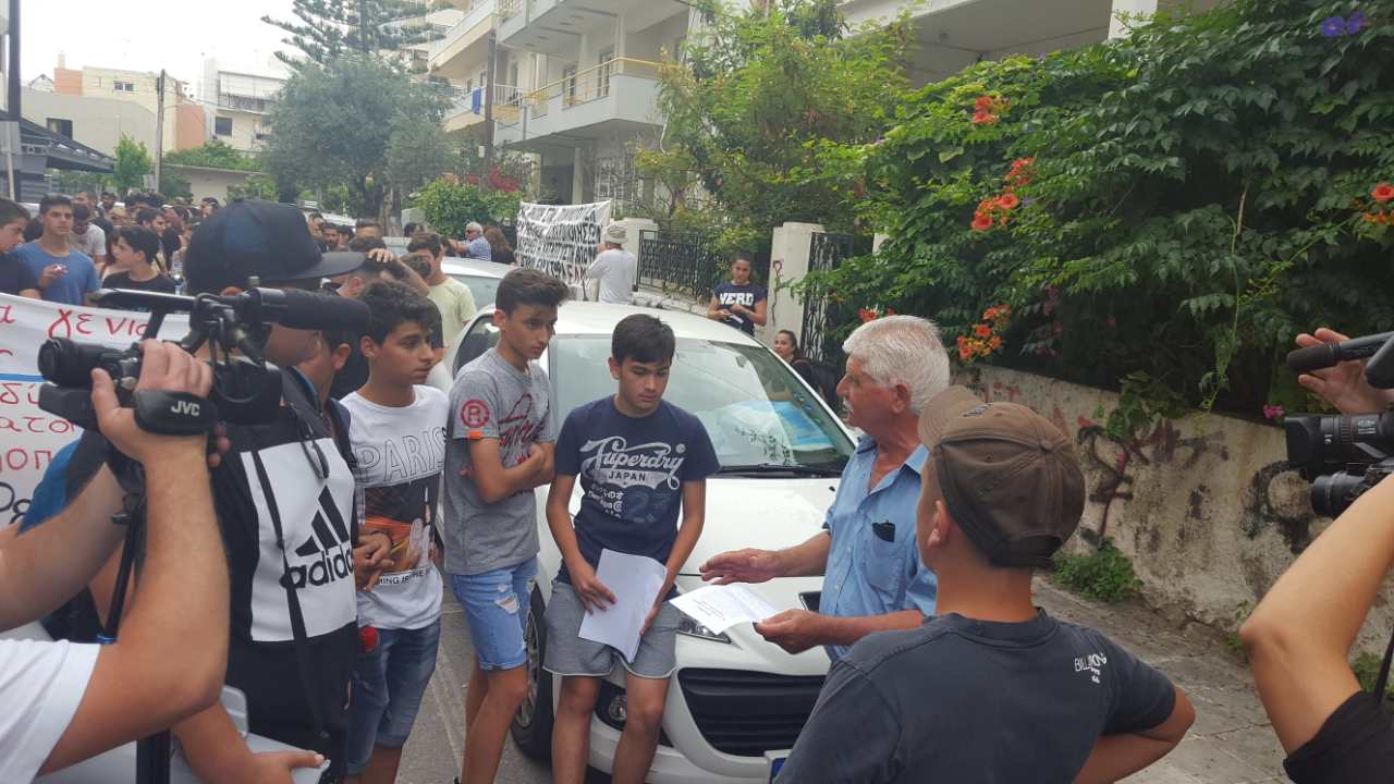 Με κύριο σύνθημα «Με καταδίκες και αποβολές δεν τρομοκρατούνται μαθητές» οι διαδηλωτές απαίτησαν να μην υπάρξει στο μέλλον παρόμοια συμπεριφορά εκπαιδευτικού ενάντια σε μαθητές, που θα τους οδηγήσει στη δικαιοσύνη. Παρέδωσαν μάλιστα ψήφισμα στον διευθυντή δευτεροβάθμιας εκπαίδευσης, Ανδρέα Ταξάκη, ζητώντας, μεταξύ άλλων, να μεριμνήσει για τους συμμαθητές τους οι οποίοι έχουν καταθέσει έφεση κατά της πρωτόδικης απόφασης.