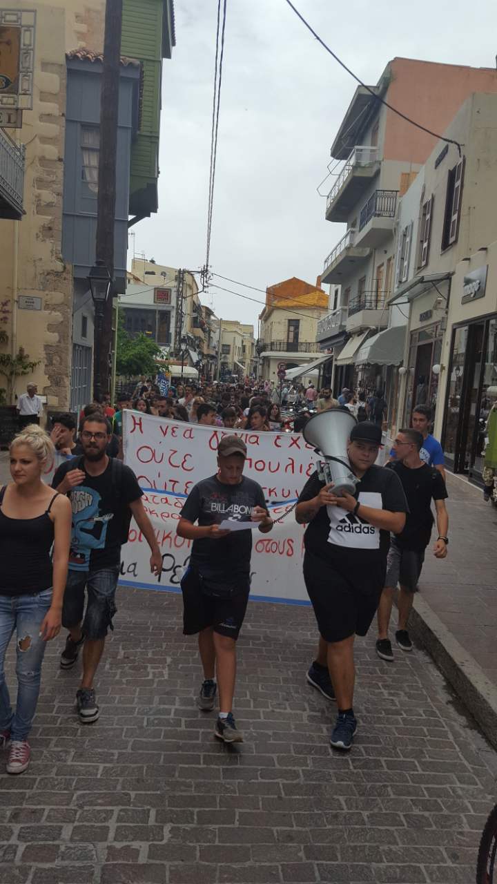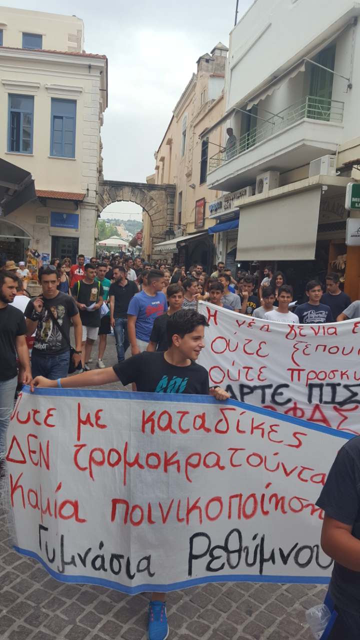 Στο τέλος της πορείας οι μαθητές δήλωσαν αποφασισμένοι να συνεχίσουν ακόμα πιο δυναμικά τις κινητοποιήσεις τους μπροστά και στην επανάληψη της δίκης στο Ρέθυμνο στις 19/6.