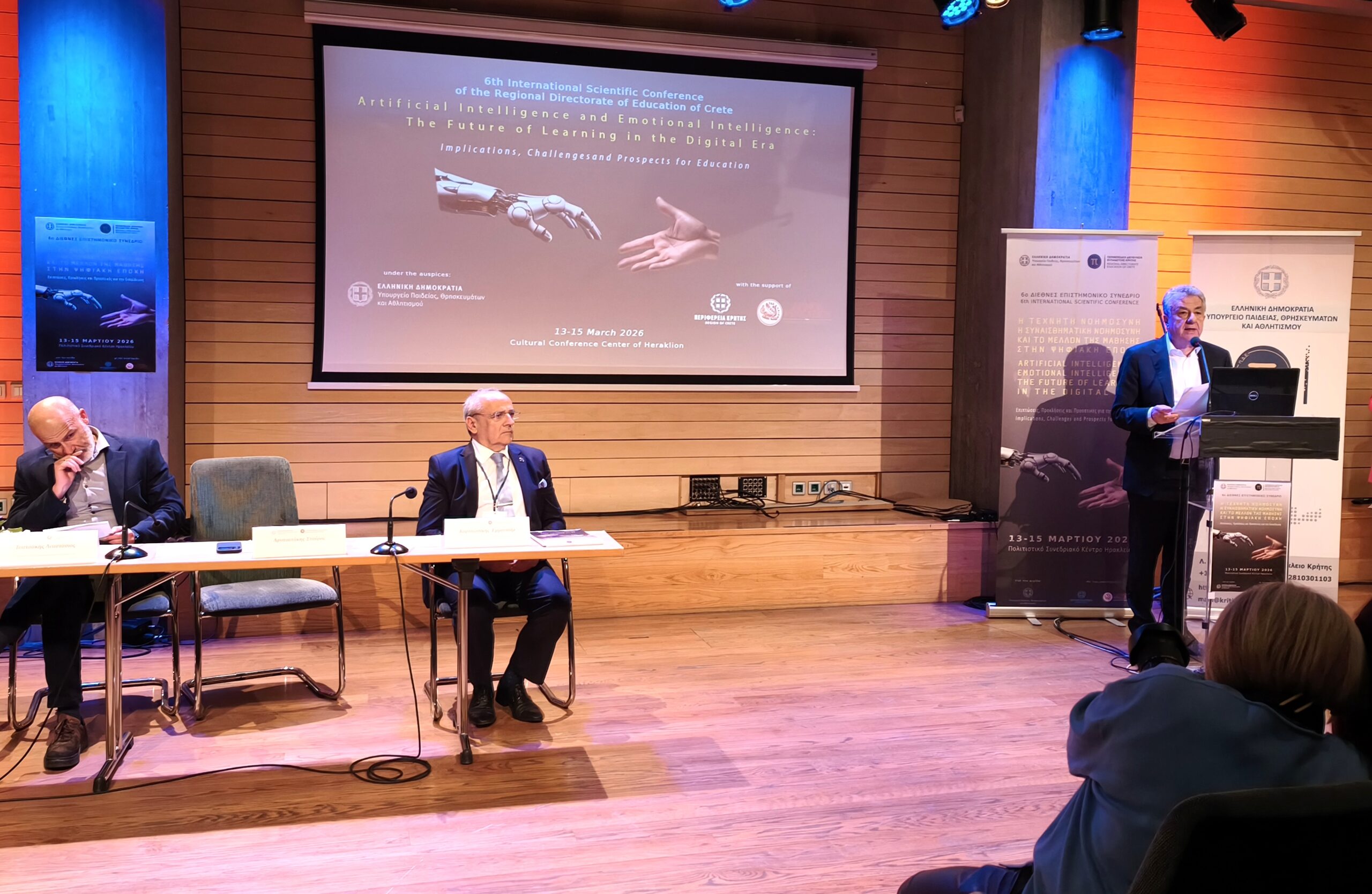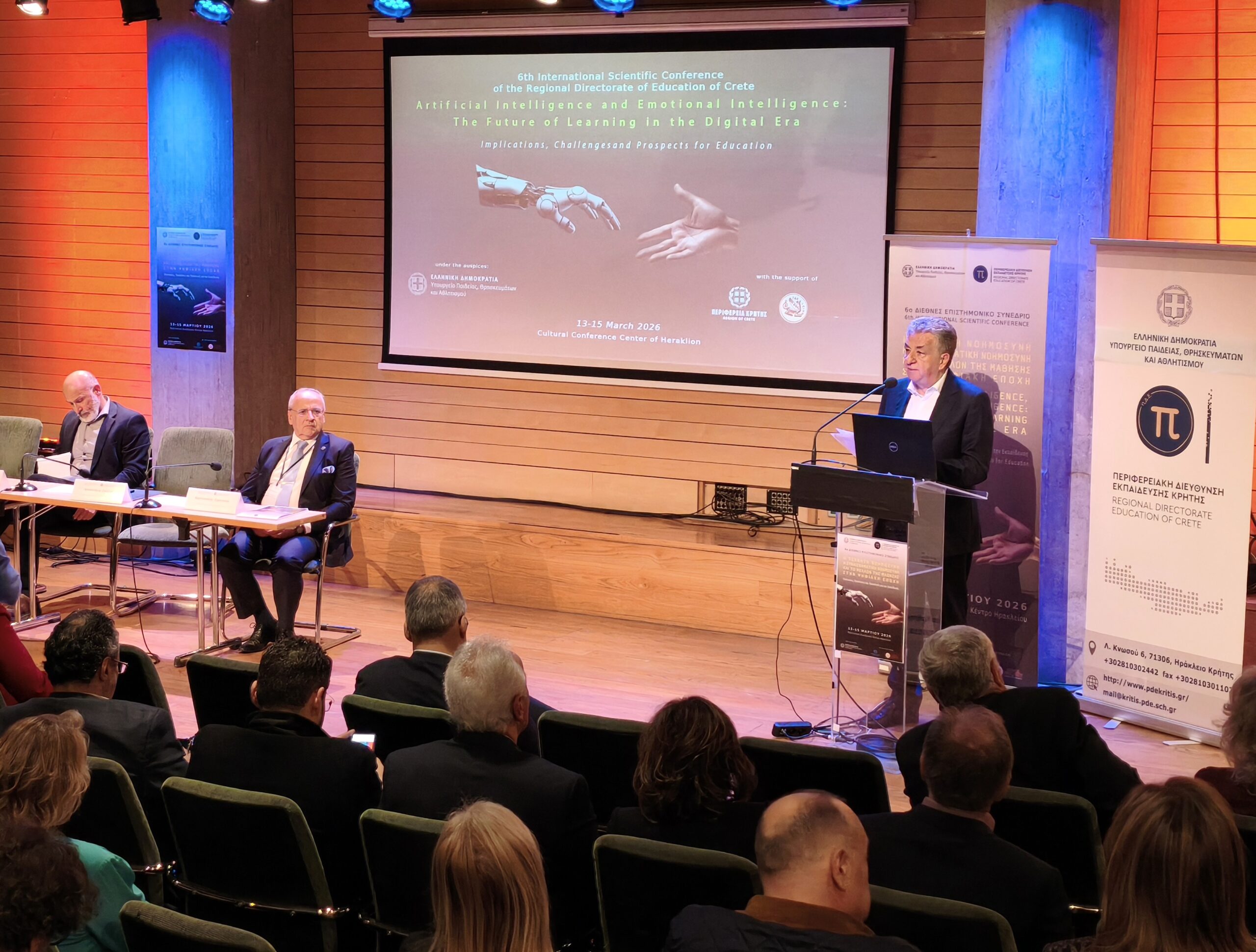 Η εκδήλωση διοργανώνεται από την Περιφερειακή Διεύθυνση Εκπαίδευσης Κρήτης και έχει θέμα «Η Τεχνητή Νοημοσύνη, η Συναισθηματική Νοημοσύνη και το μέλλον της μάθησης στην Ψηφιακή Εποχή: Επιπτώσεις, Προκλήσεις και Προοπτικές για την Εκπαίδευση». Οι εργασίες του συνεδρίου θα ολοκληρωθούν σήμερα, 15 Μαρτίου.