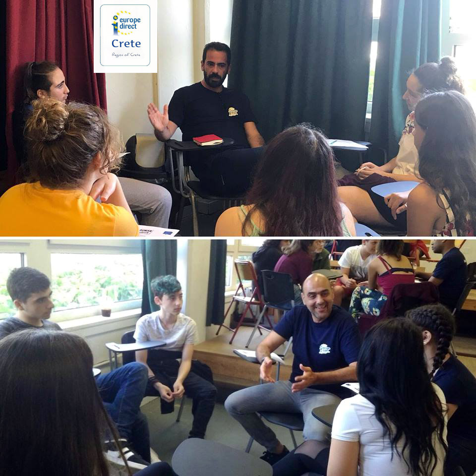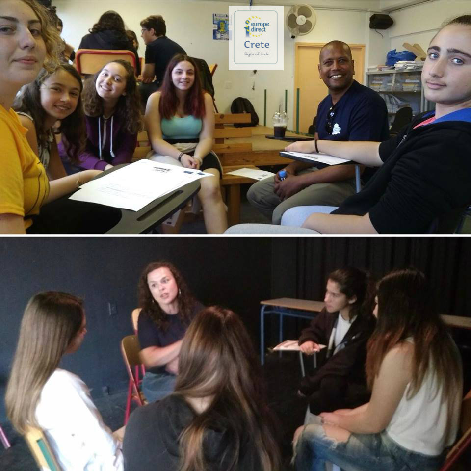Η δράση του Ηρακλείου, υλοποιήθηκε από το Europe Direct της Περιφέρειας Κρήτης την Τετάρτη 2 Μαΐου στο Καλλιτεχνικό Γυμνάσιο Ηρακλείου, με κεντρικό στόχο ν’ ανοίξει τη συζήτηση για την αντιμετώπιση των διαφόρων μορφών προκαταλήψεων.