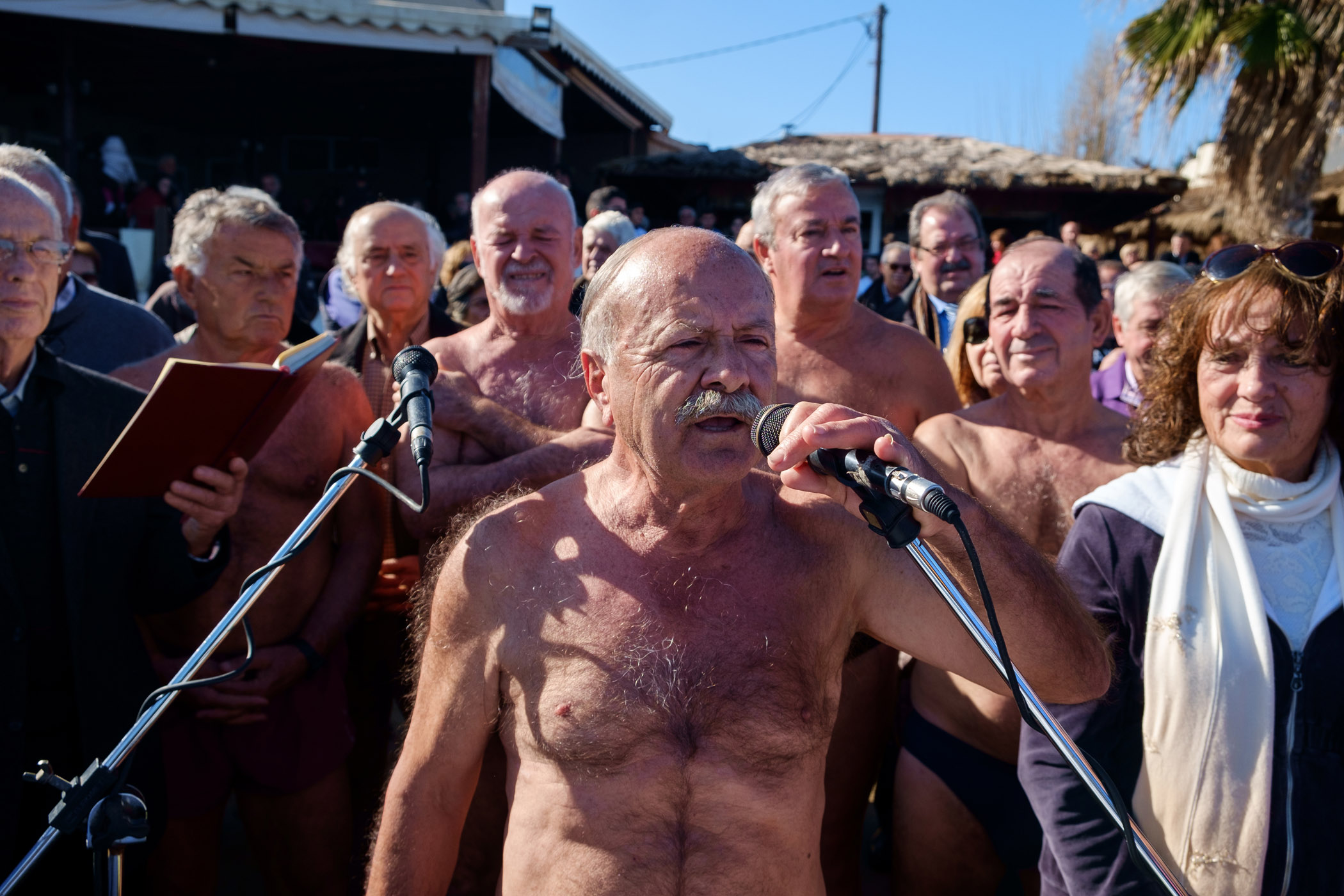 Μεγάλη η προσέλευση και εκεί με δεκάδες μέλη του συλλόγου κάθε ηλικίας να πηδούν στη θάλασσα για να πιάσουν το σταυρό.