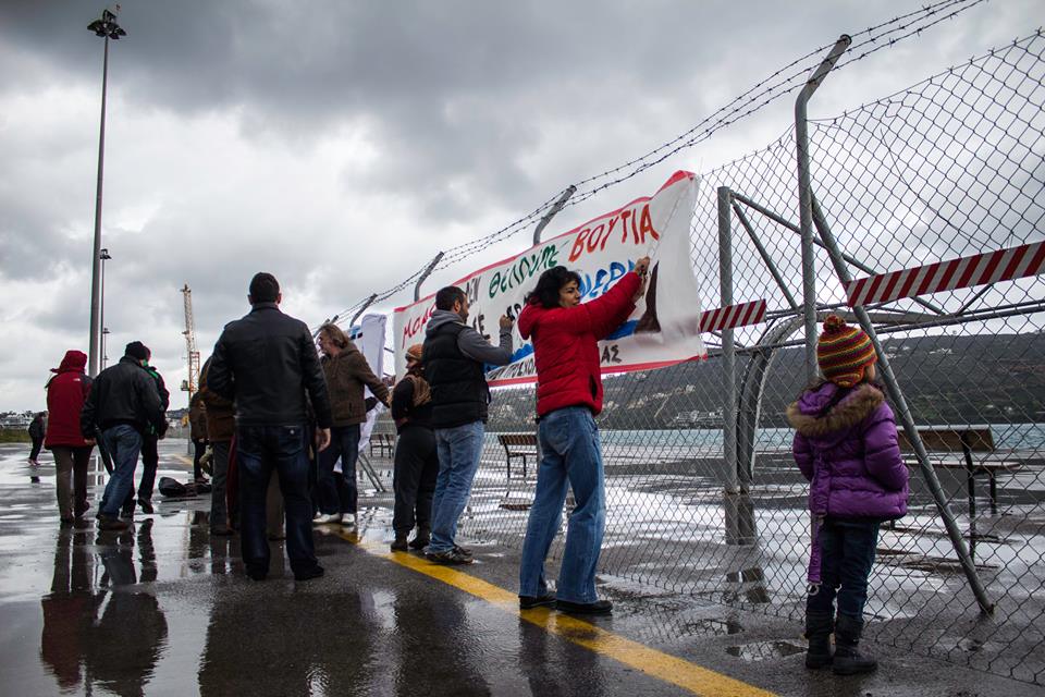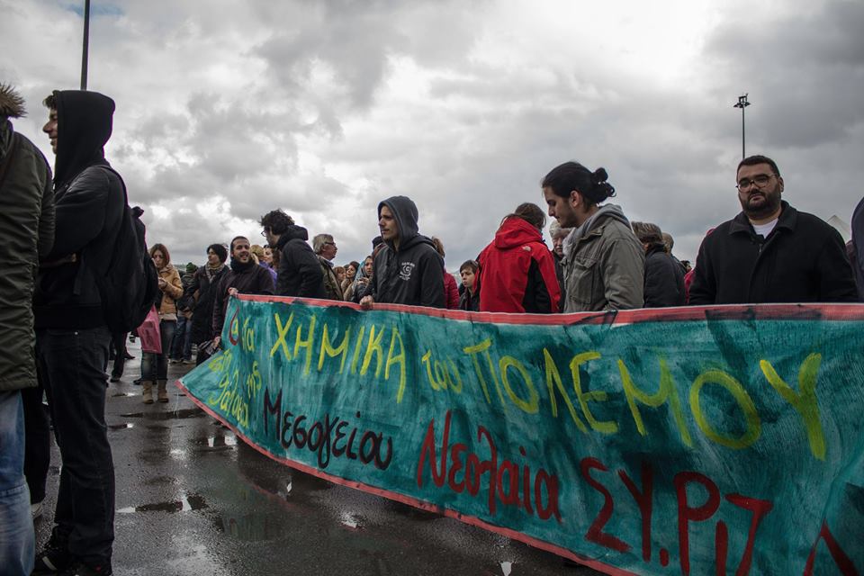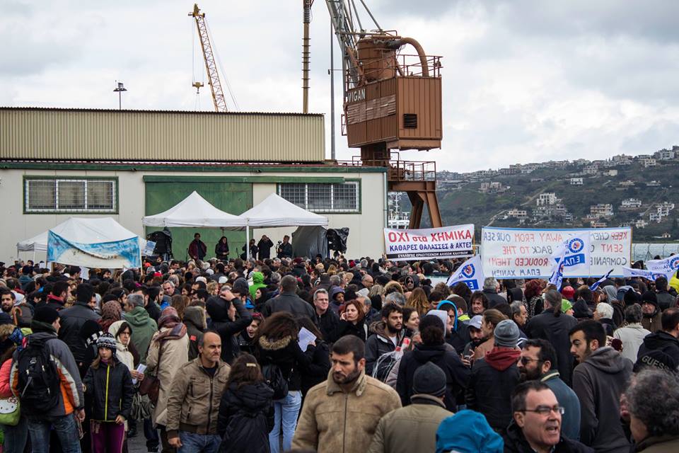 Παρά τις άσχημες καιρικές συνθήκες και το έντονο κρύο εκατοντάδες πολίτες, συγκεντρώθηκαν την Κυριακή στο λιμάνι της Σούδας για να διαμαρτυρηθούν ενάντια στην προγραμματισμένη διαδικασία υδρόλυσης των χημικών της Συρίας εν πλω.