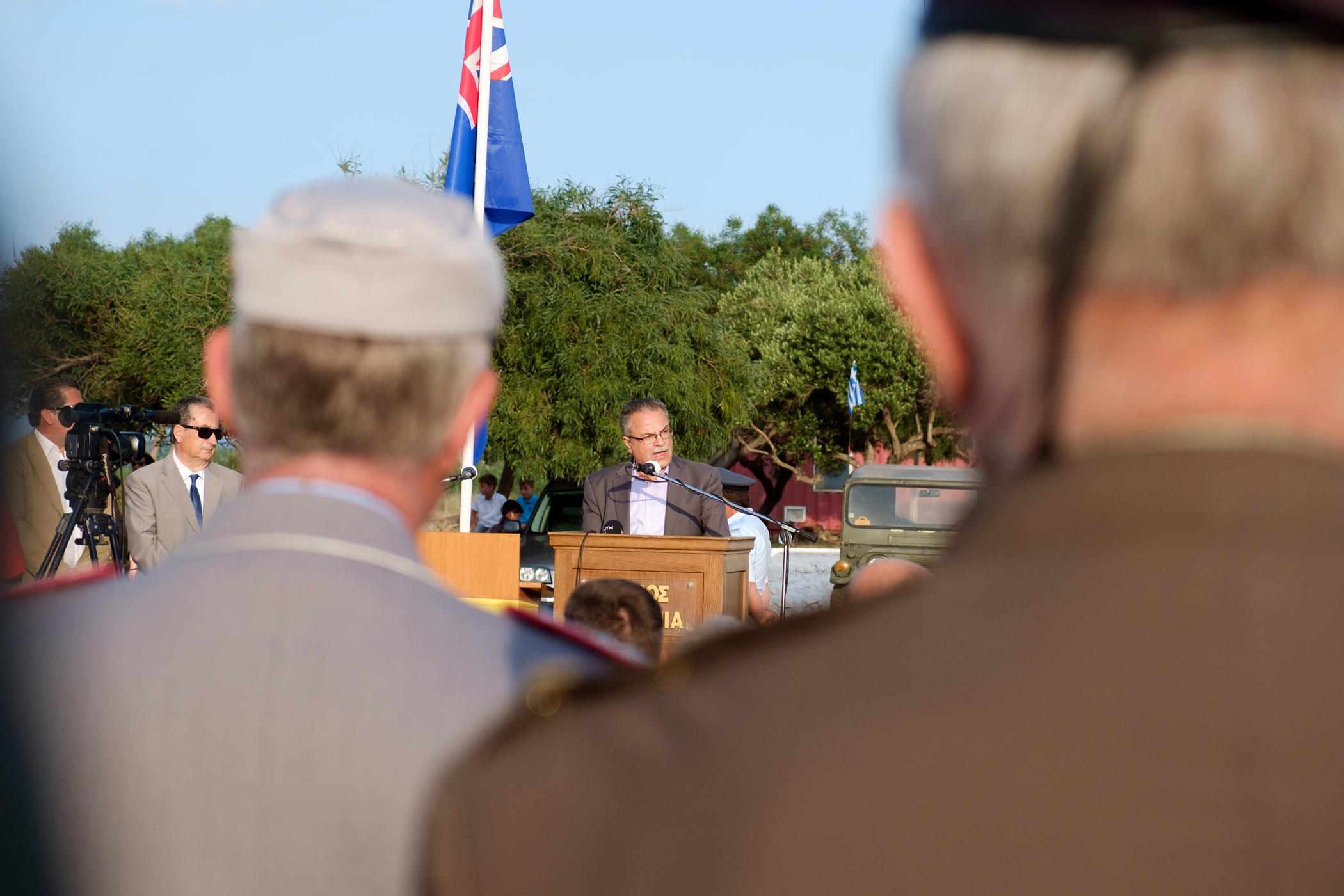 Ο Δήμαρχος Πλατανιά κ. Γιάννης Μαλανδράκης διάβασε μακροσκελές απόσπασμα από την αναφορά του Νίκου Καζαντζάκη σχετική με τη Μάχη της Κρήτης ενώ επανέλαβε το αίτημα να παραδοθεί το αεροδρόμιο Μάλεμε στην τοπική αυτοδιοίκηση και στον Δήμο Πλατανιά.