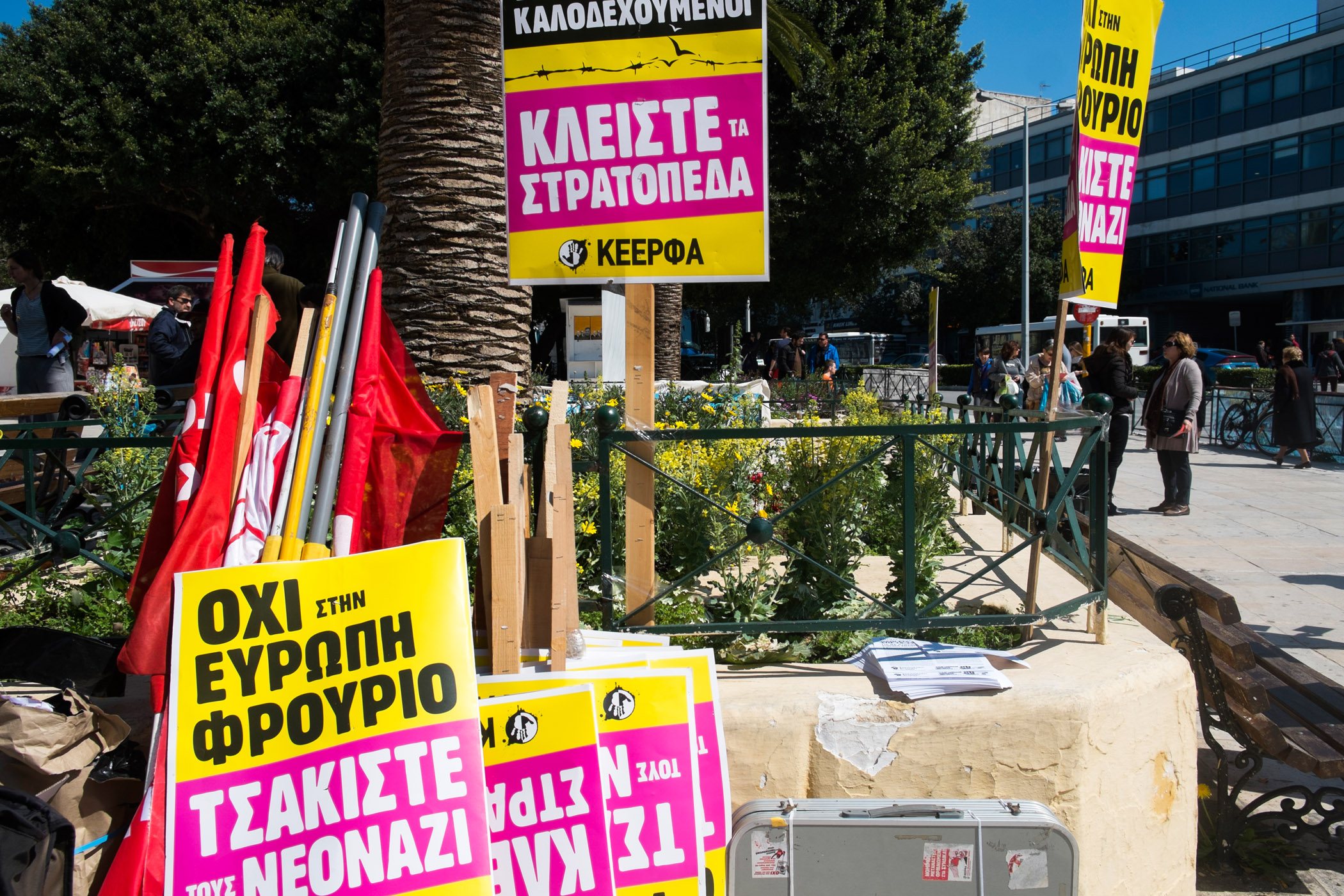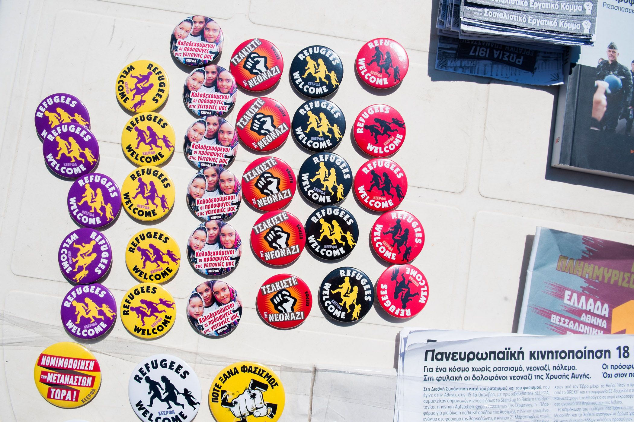 Σήμερα είμαστε συγκεντρωμένοι, ανταποκρινόμενοι στο κάλεσμα για διεθνή κινητοποίηση σε όλη την Ευρώπη, ενάντια στο Ρατσισμό, ενάντια στην άνοδο της ακροδεξιάς και τη φασιστική απειλή παντού. Ξέρουμε ότι η Ευρωπαϊκή Ένωση και οι πολιτικές που έχει ακολουθήσει όλα τα χρόνια έχουν φέρει και το ρατσισμό ακριβώς για να δικαιολογήσει από τη μία τα μέτρα λιτότητας χρησιμοποιώντας μετανάστες και πρόσφυγες ως αποδιοπομπαίους τράγους αλλά και ταυτόχρονα για να δικαιολογήσει τις συμμετοχές στους ιμπεριαλιστικούς πολέμους της Μέσης Ανατολής.