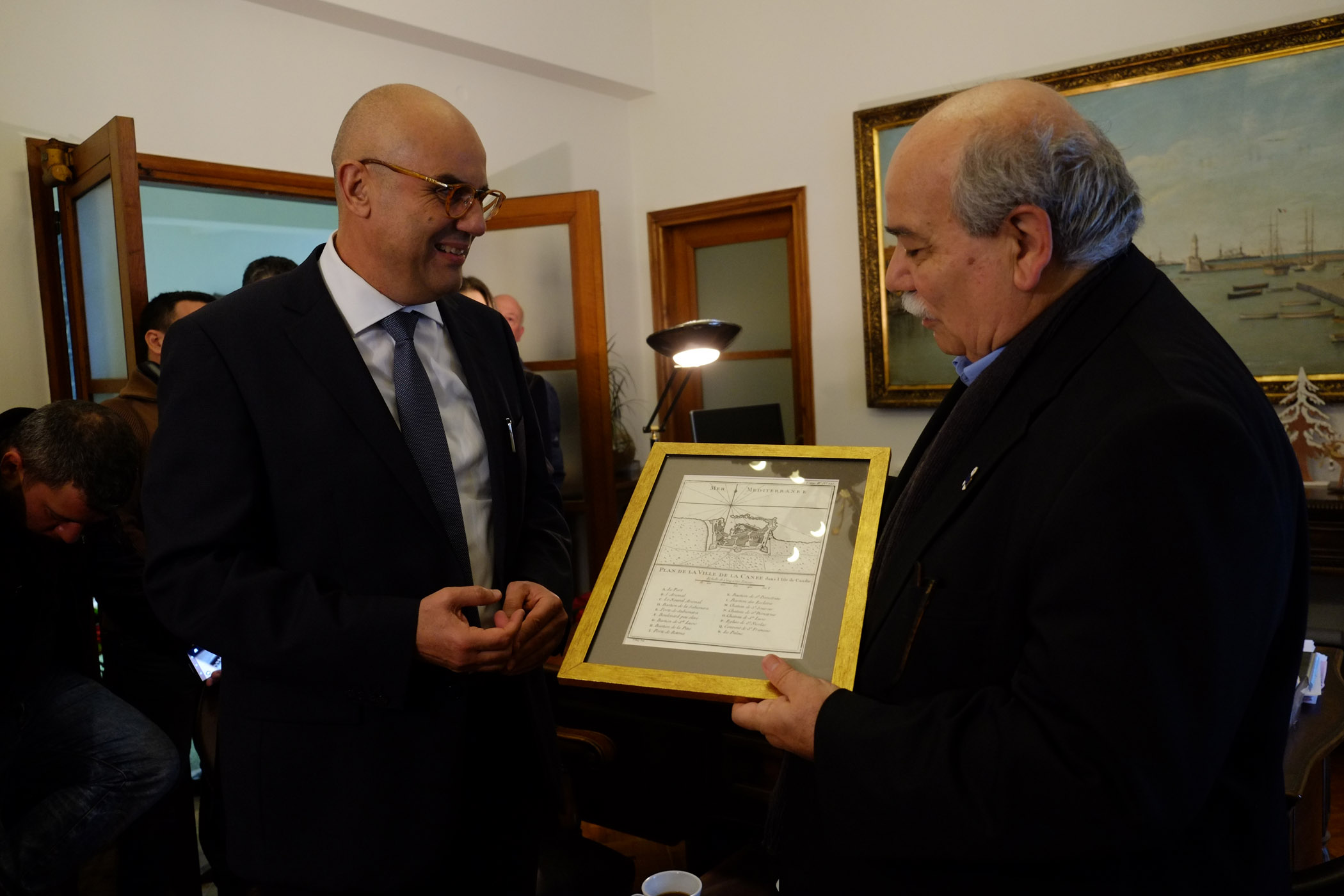 Εκεί, δόθηκε από τον Δήμαρχο Χανίων μία γκραβούρα, από τη συλλογή του Ναυτικού Μουσείο, από τη δωρεά Τζωρτζάκη.