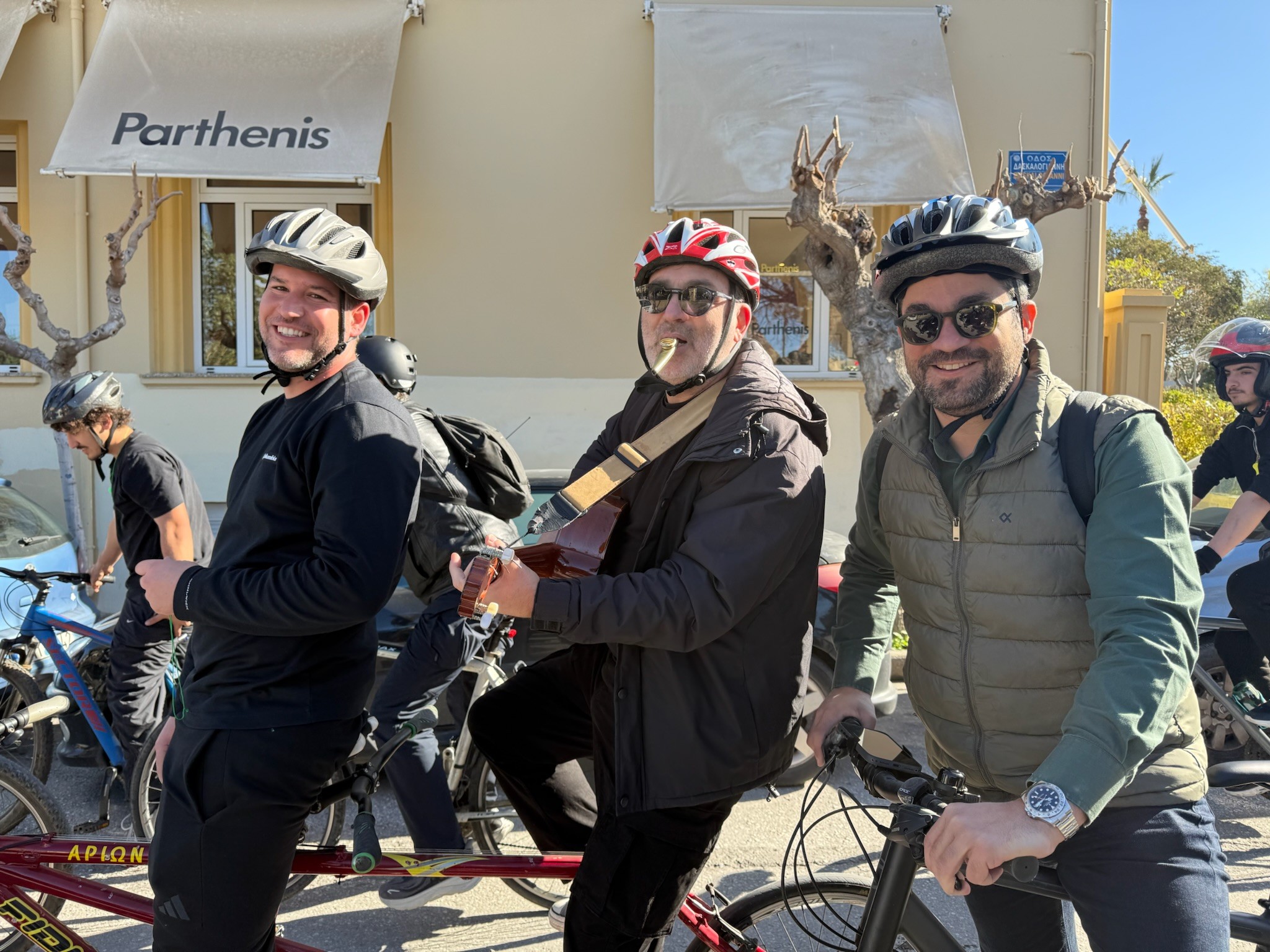 Τις ποδηλατικές διαδρομές ακολούθησαν ανάμεσα στα παιδιά, ο Δήμαρχος Χανίων, Παναγιώτης Σημανδηράκης, ο Αντιδήμαρχος Παιδείας, Αντώνης Βαρδάκης και ο Αντιδήμαρχος Πολιτισμού, Γιάννης Γιαννακάκης, ο οποίος μάλιστα έδωσε και τον «ρυθμό» της δράσης ποδηλατώντας με μια κιθάρα.
