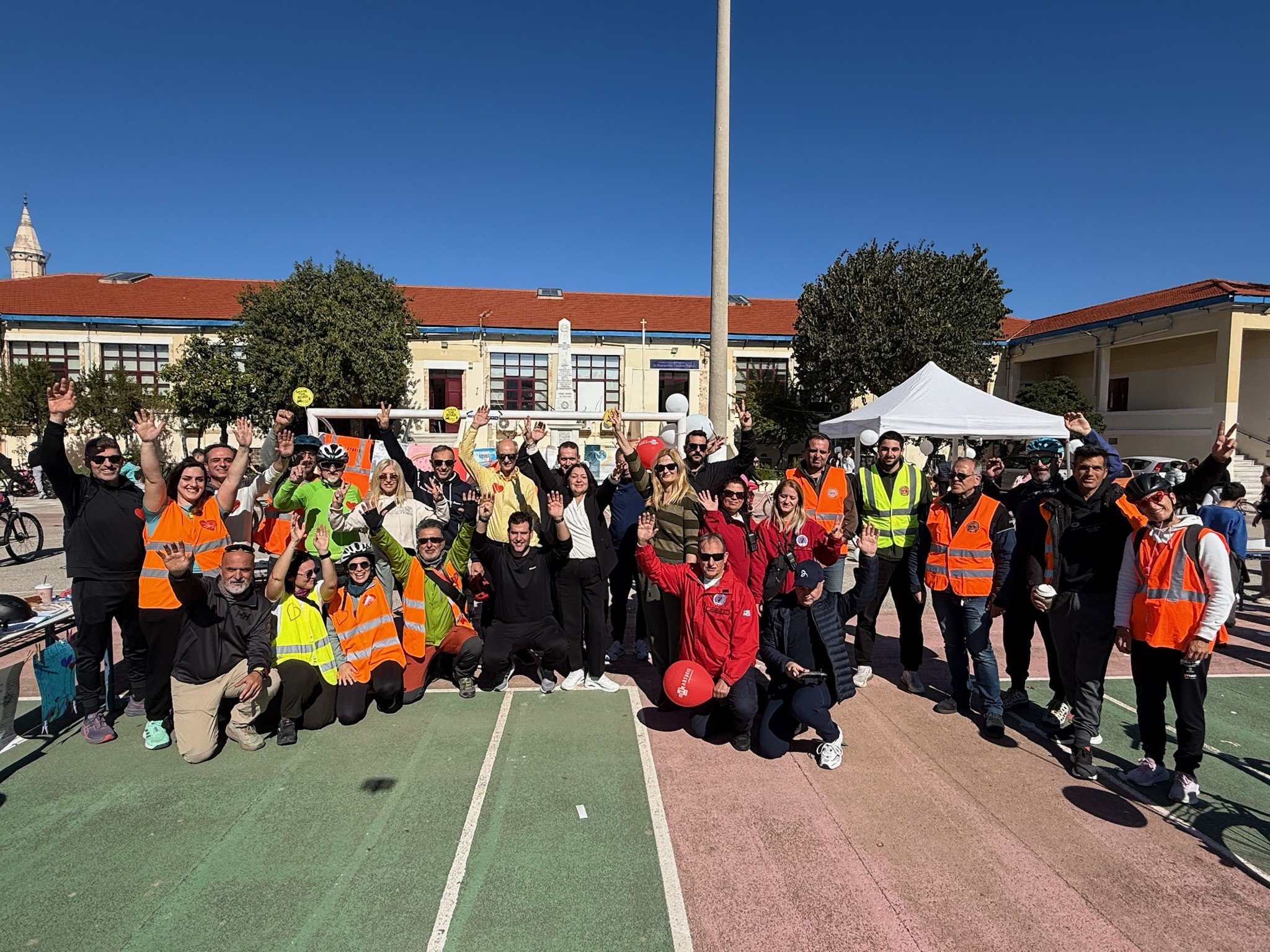 Τρεις οργανωμένες ομαδικές ποδηλατικές διαδρομές (ποδηλατοτρένα) με τη συμμετοχή μαθητών/τριών, εκπαιδευτικών και γονέων, διέσχισαν τους δρόμους των Χανίων για να καταλήξουν στην αυλή του Πειραματικού Γυμνασίου Χανίων. Εκεί πραγματοποιήθηκε μια εντυπωσιακή ομαδική φωτογραφία, καθώς και η κοπή της πίτας του ποδηλάτου.