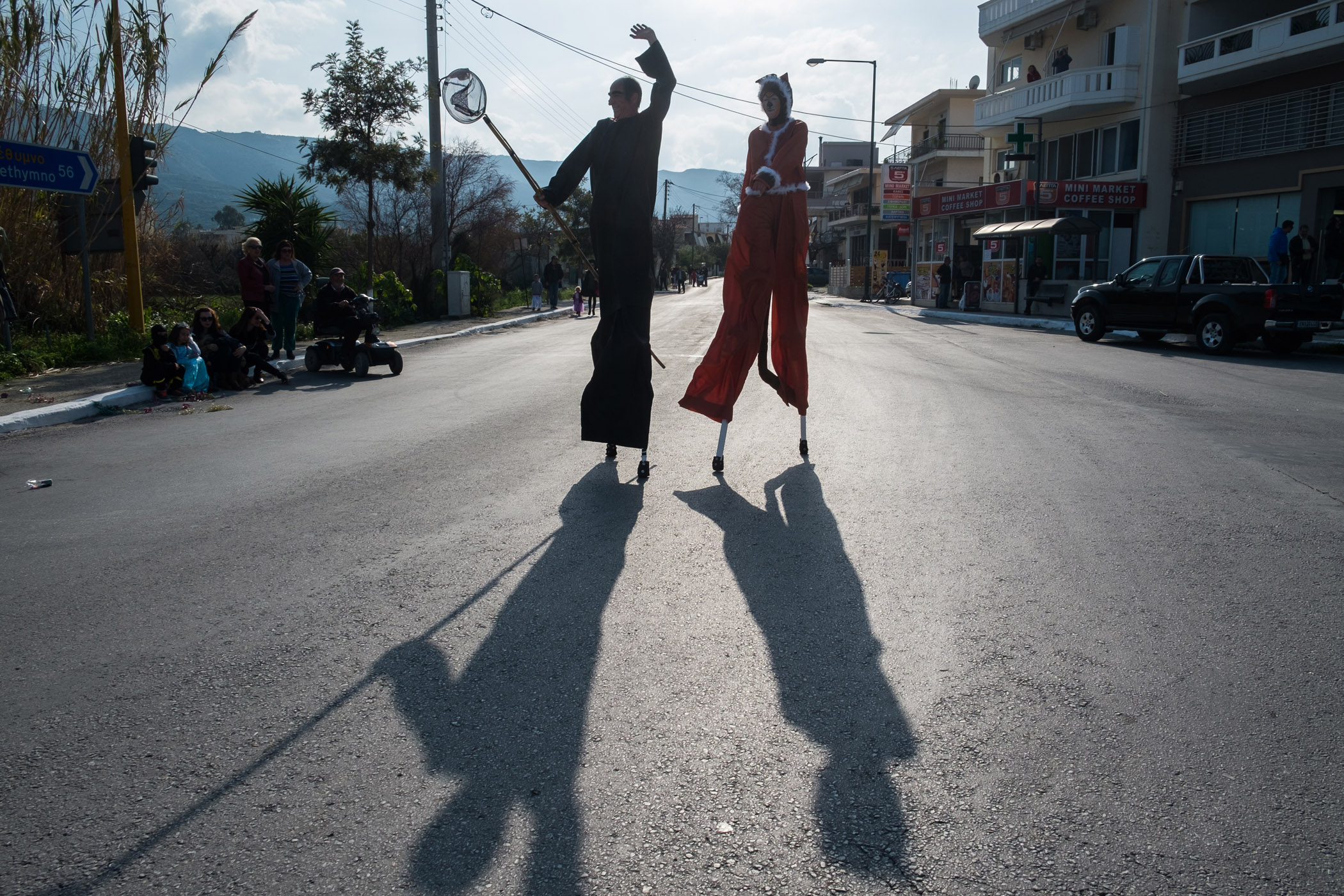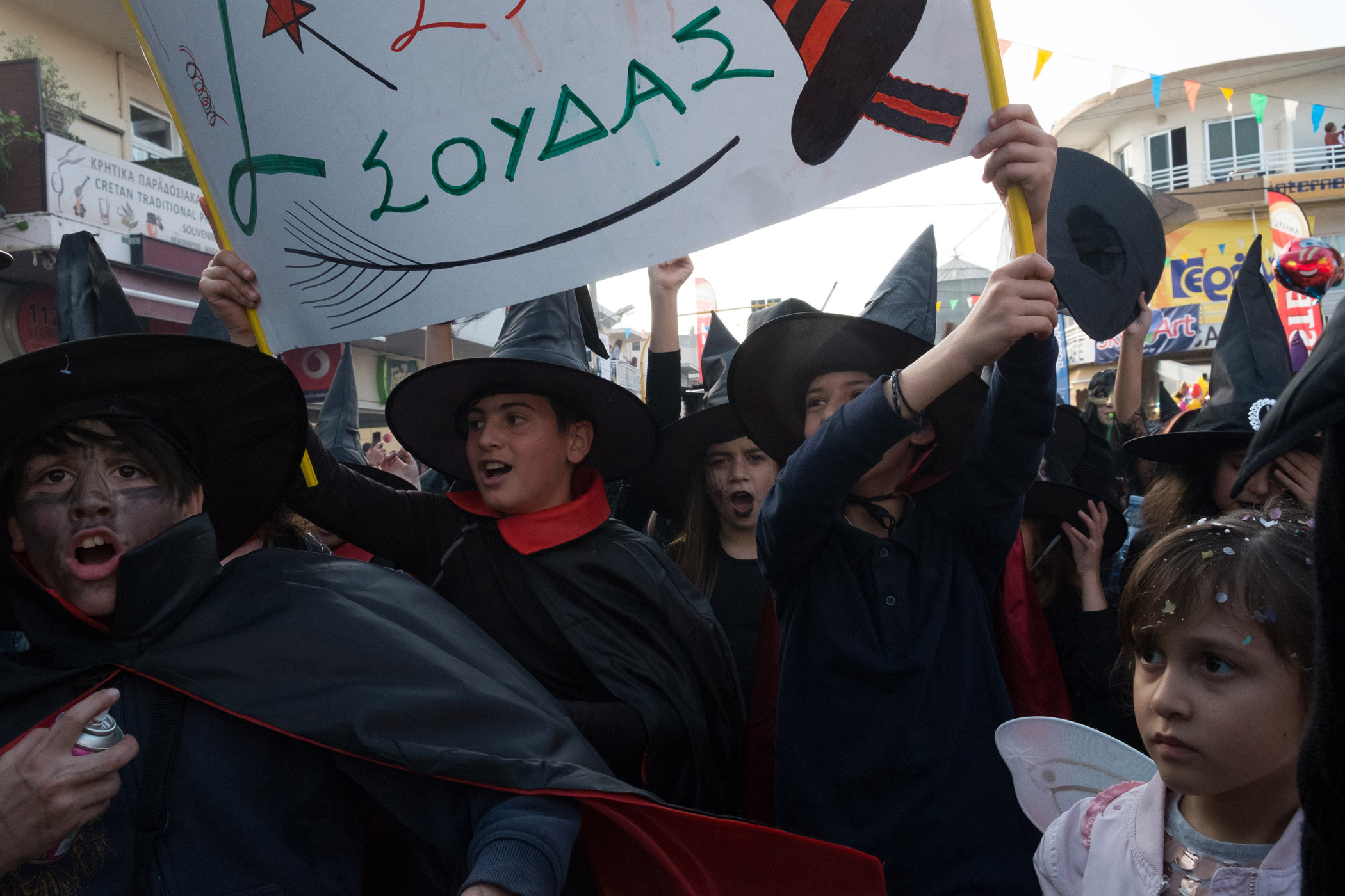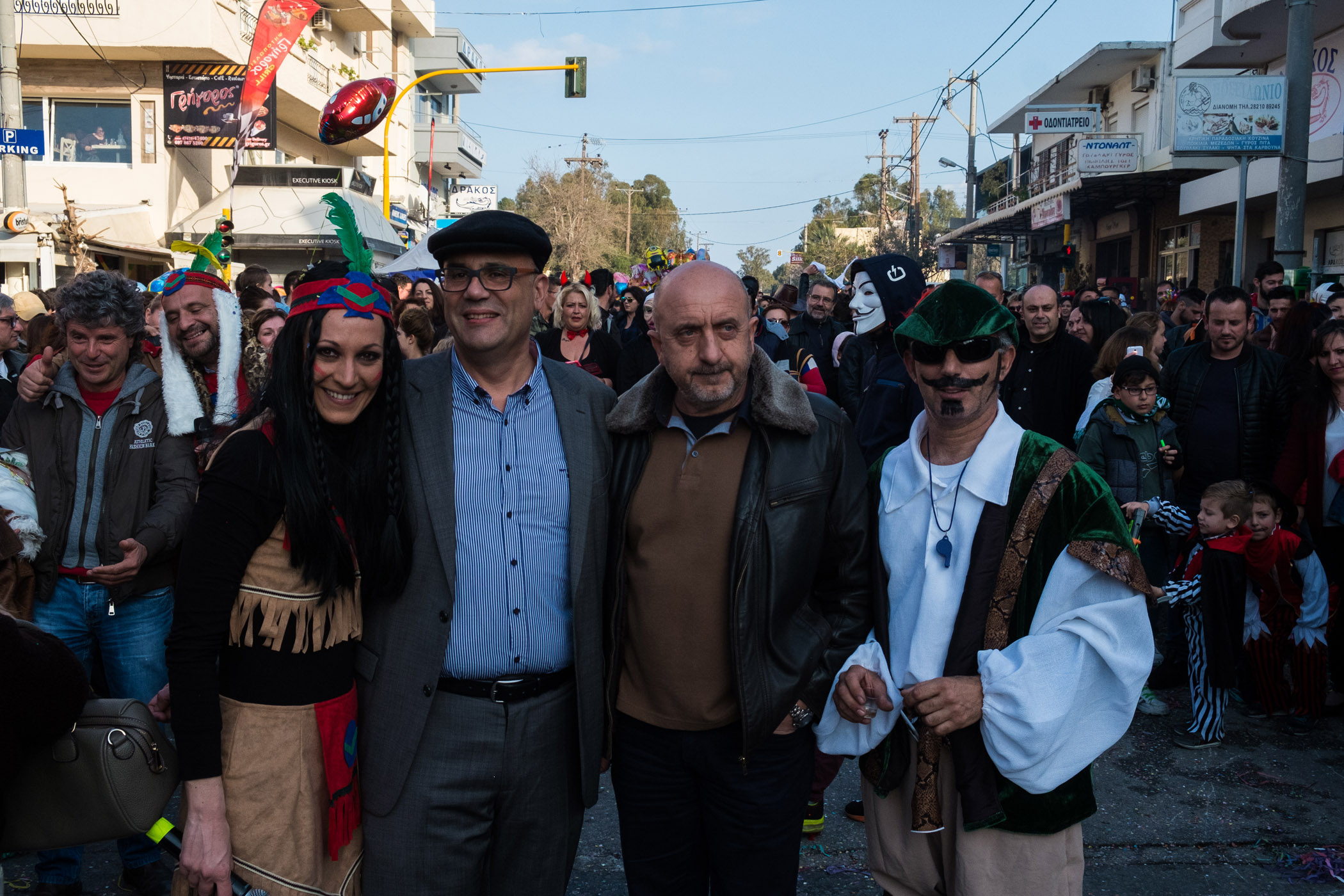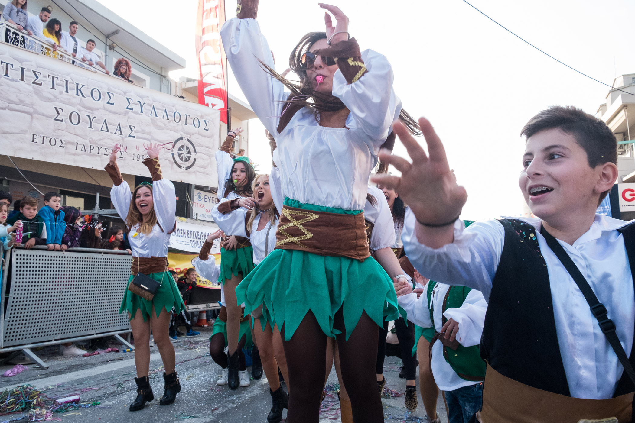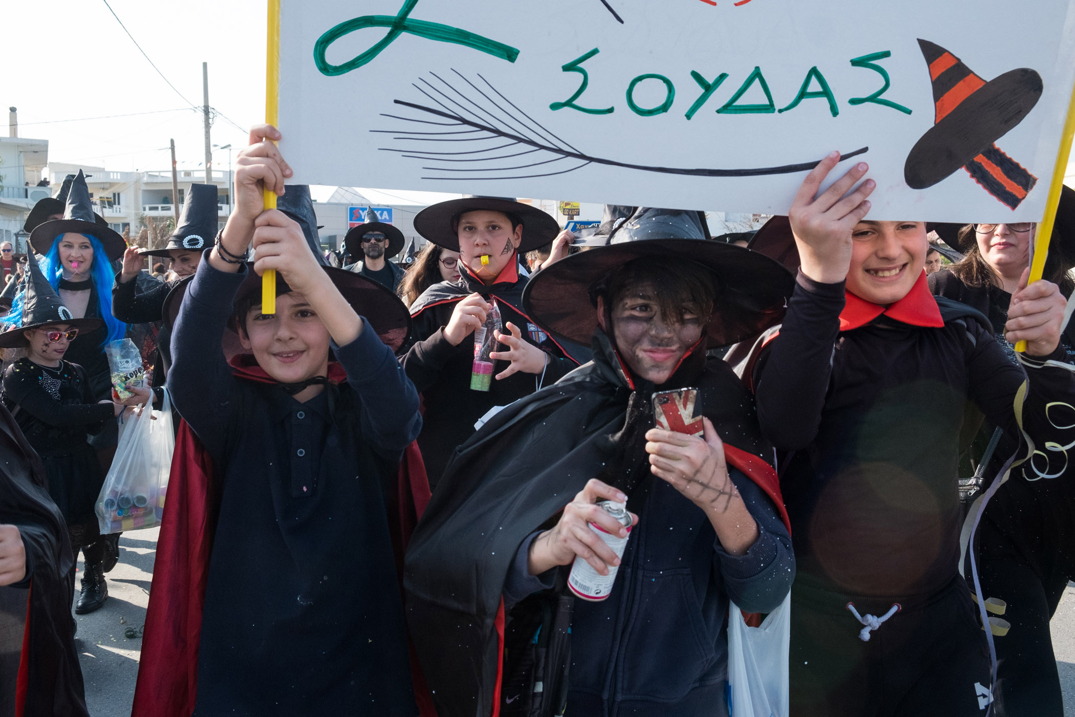 Αρκετά αργότερα, και μετά τις 5, η παρέλαση τελείωσε. Όμως η γιορτή συνεχίστηκε, με τους καρναβαλιστές να παραμένουν στην πλατεία της Σούδας, να πίνουν, να τρώνε και να χορεύουν.