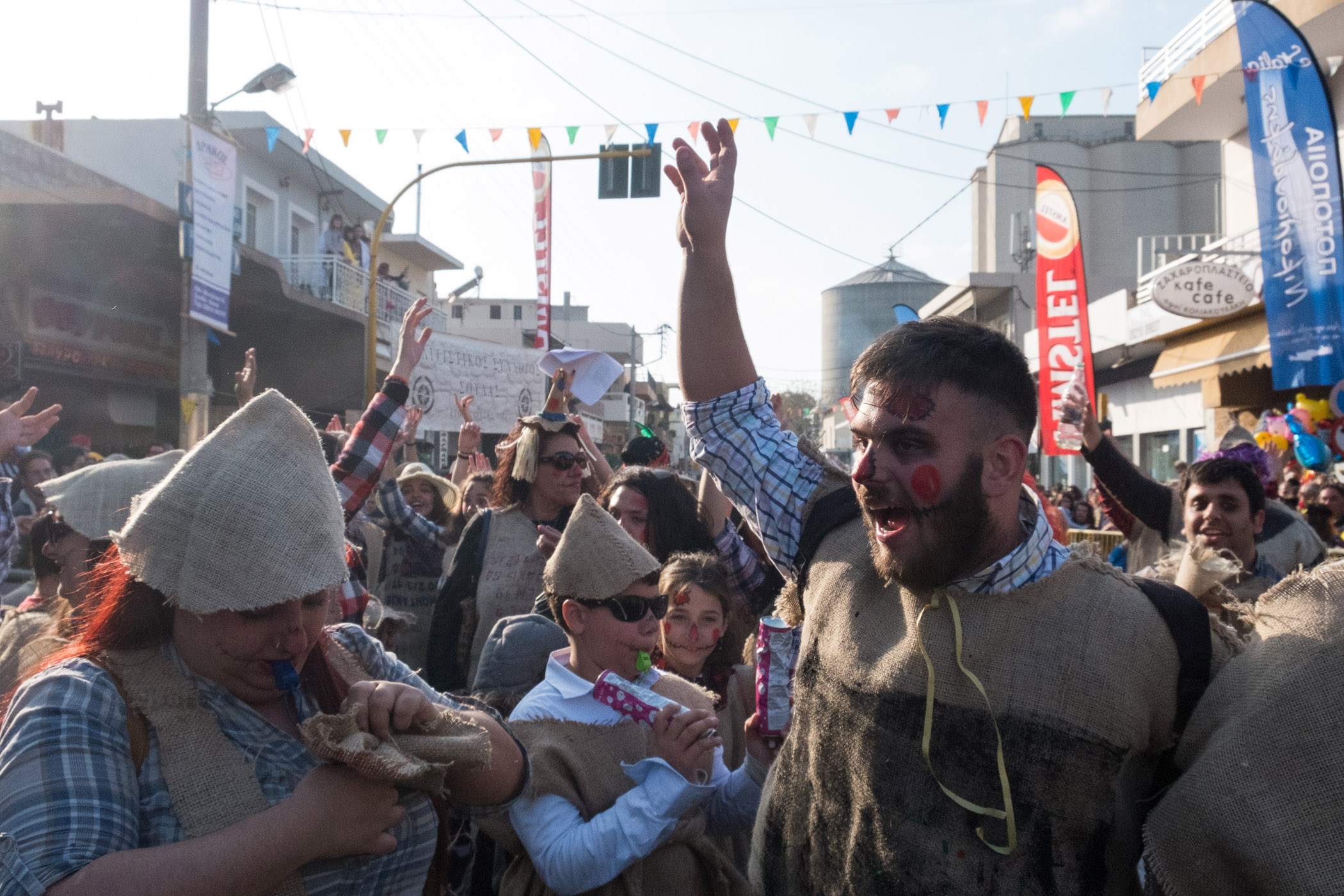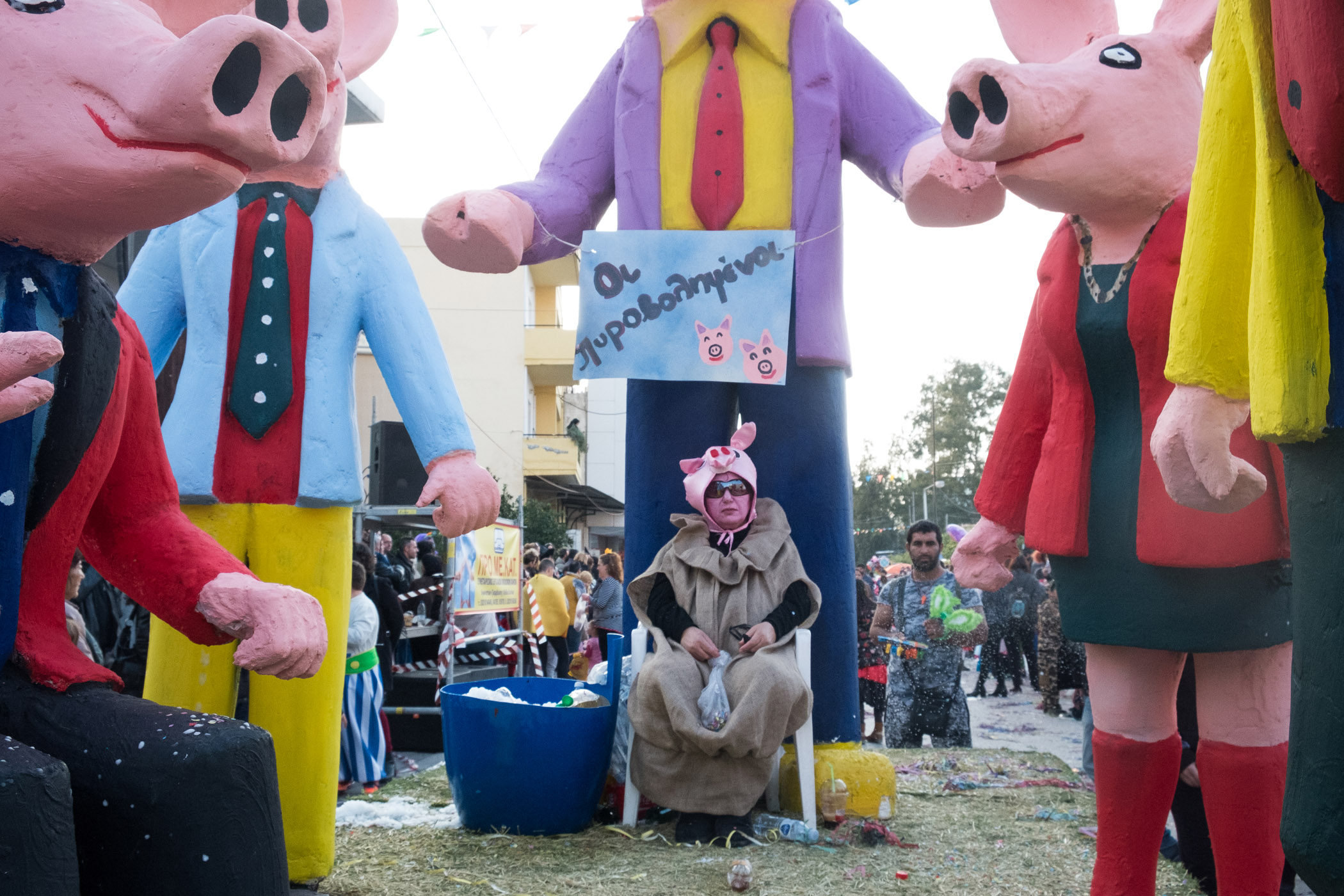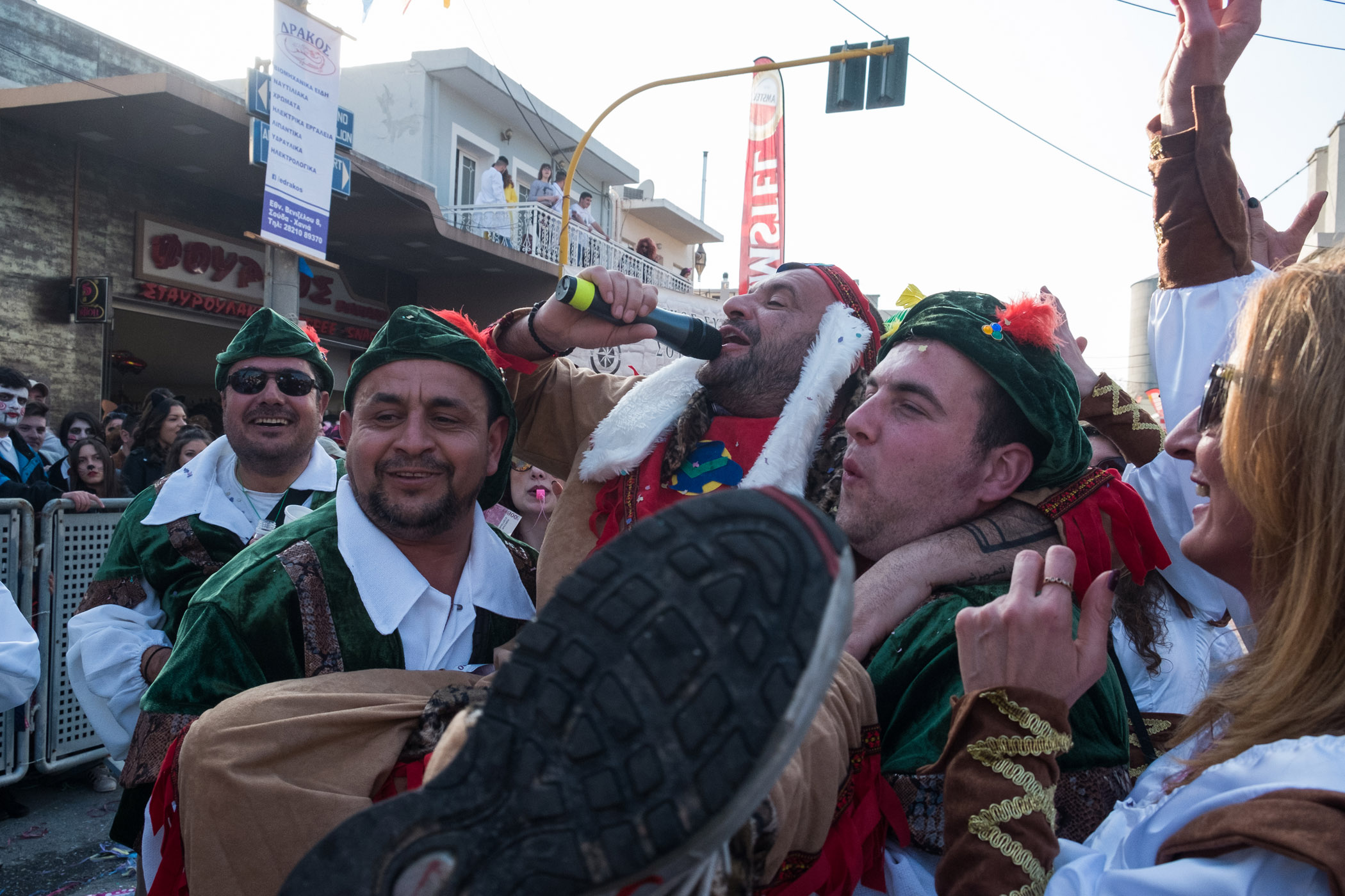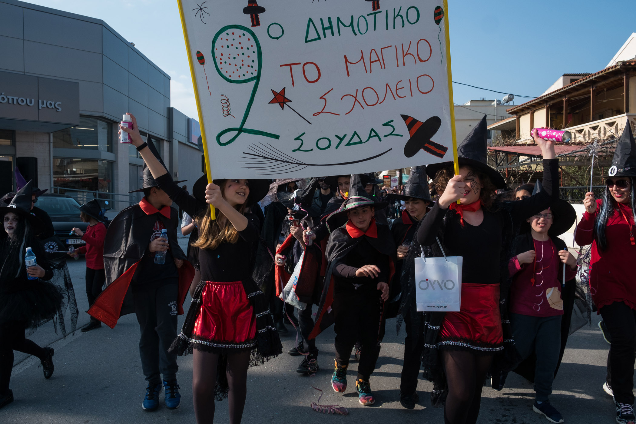 Αρκετά αργότερα, και μετά τις 5, η παρέλαση τελείωσε. Όμως η γιορτή συνεχίστηκε, με τους καρναβαλιστές να παραμένουν στην πλατεία της Σούδας, να πίνουν, να τρώνε και να χορεύουν.