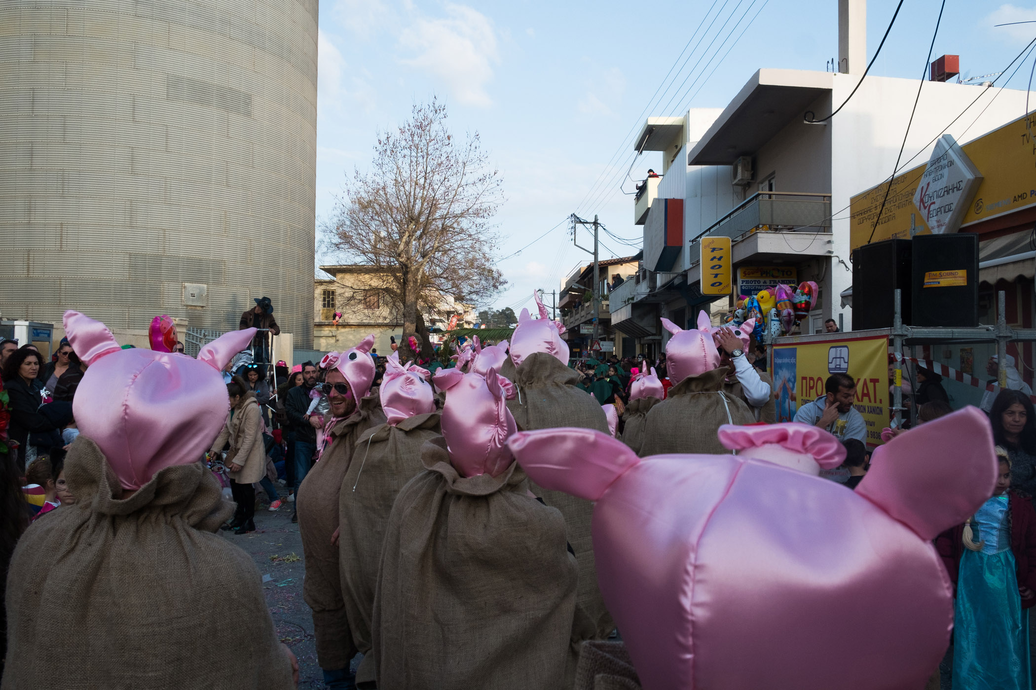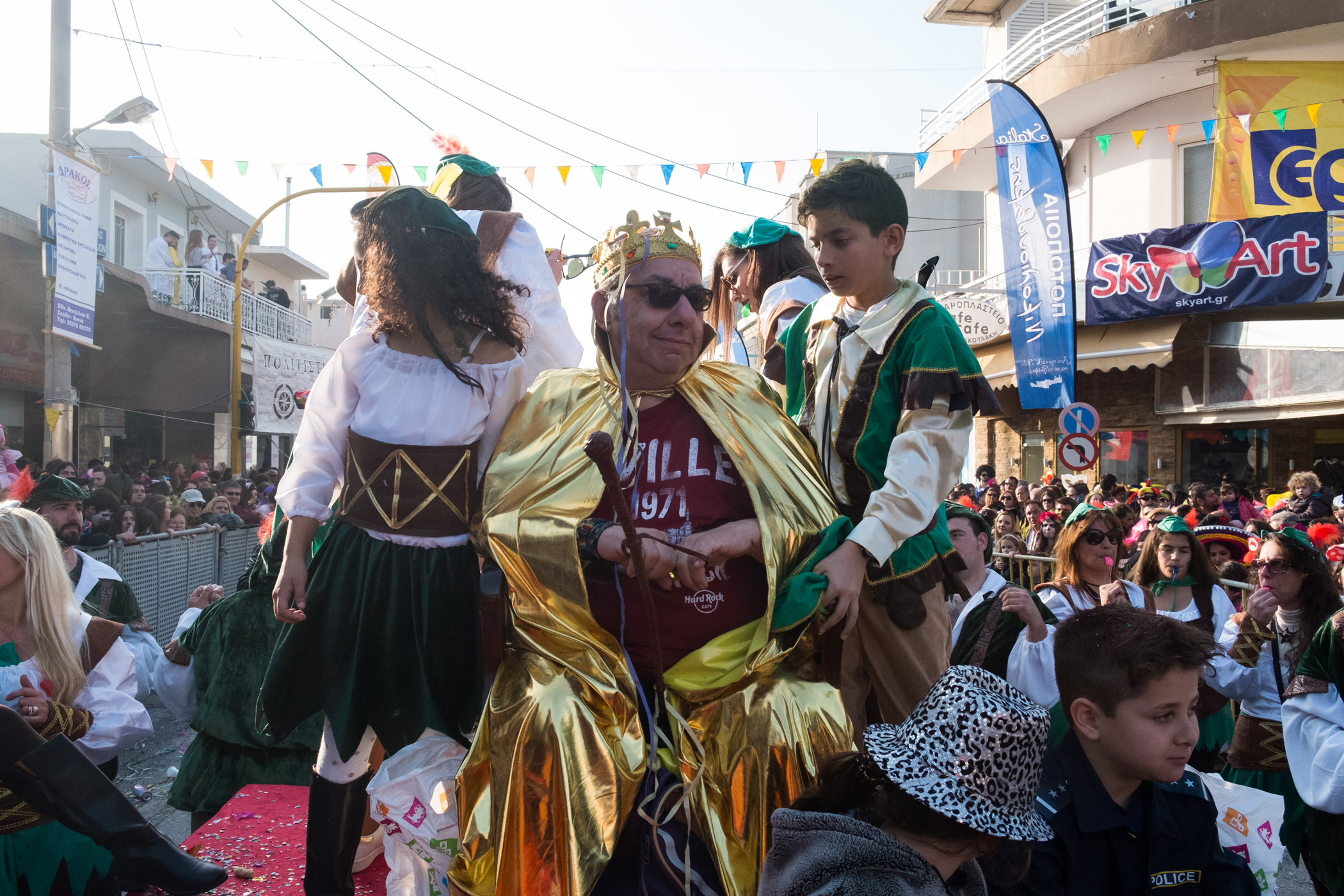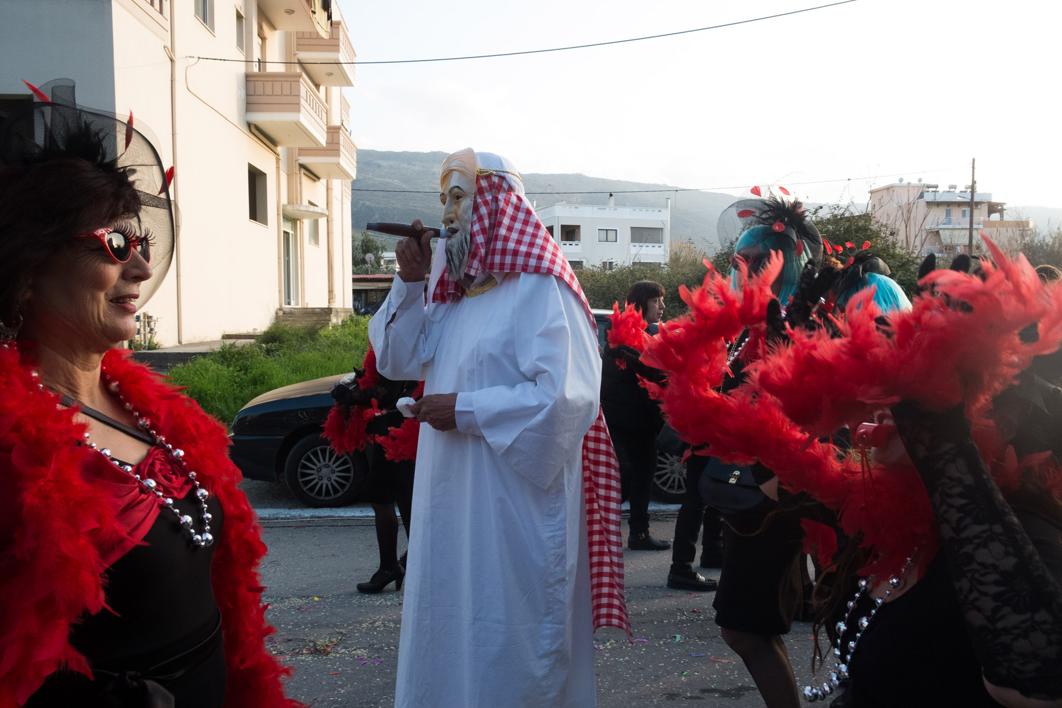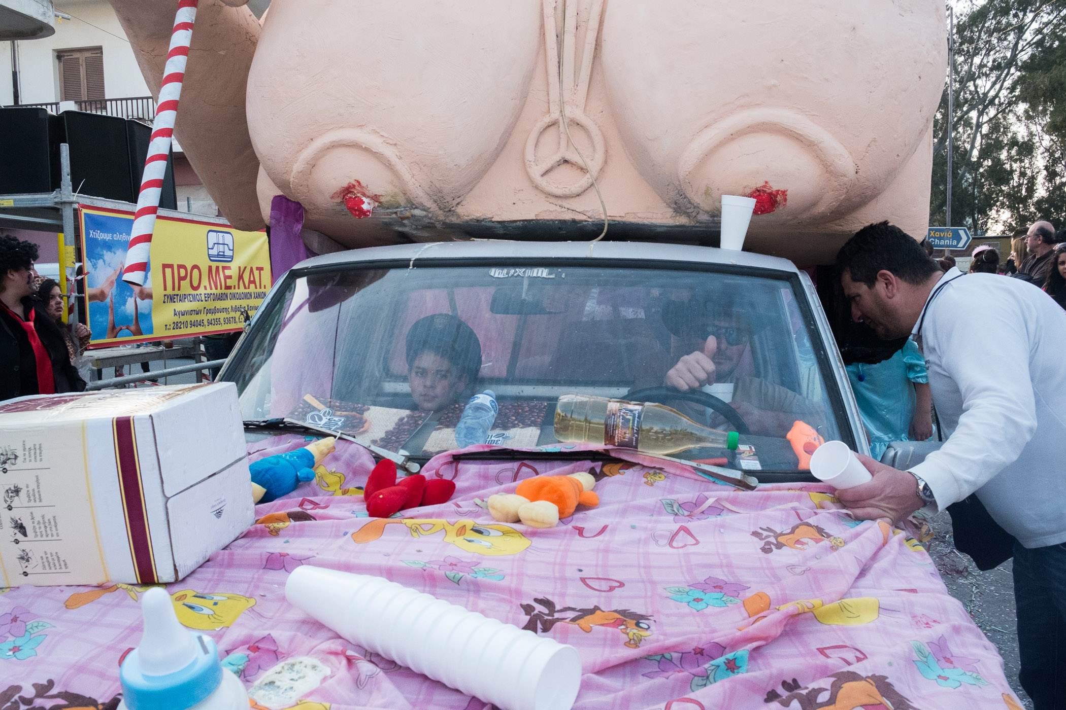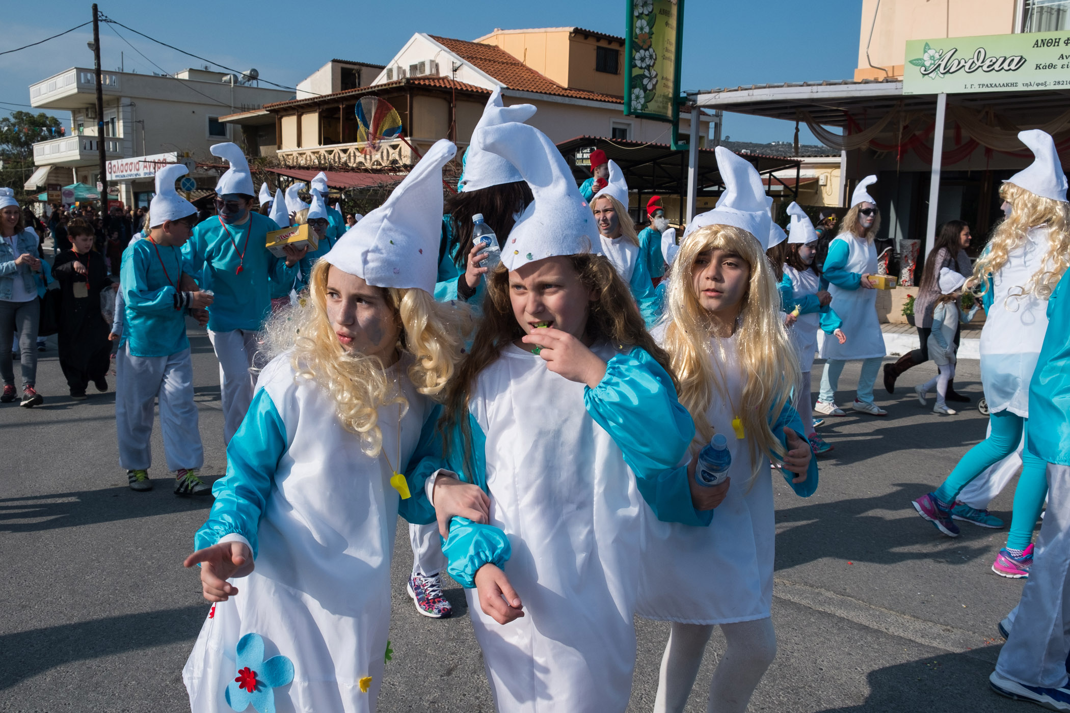 Αρκετά αργότερα, και μετά τις 5, η παρέλαση τελείωσε. Όμως η γιορτή συνεχίστηκε, με τους καρναβαλιστές να παραμένουν στην πλατεία της Σούδας, να πίνουν, να τρώνε και να χορεύουν.