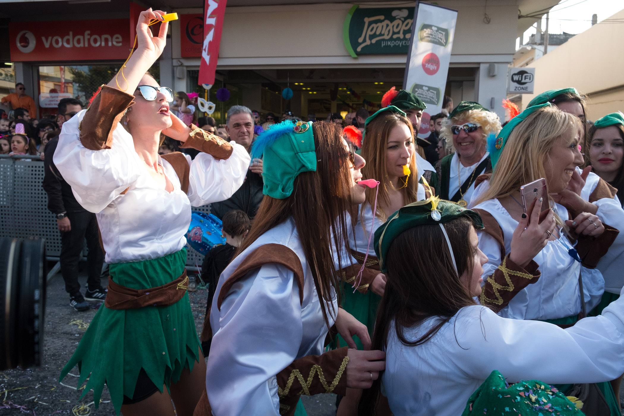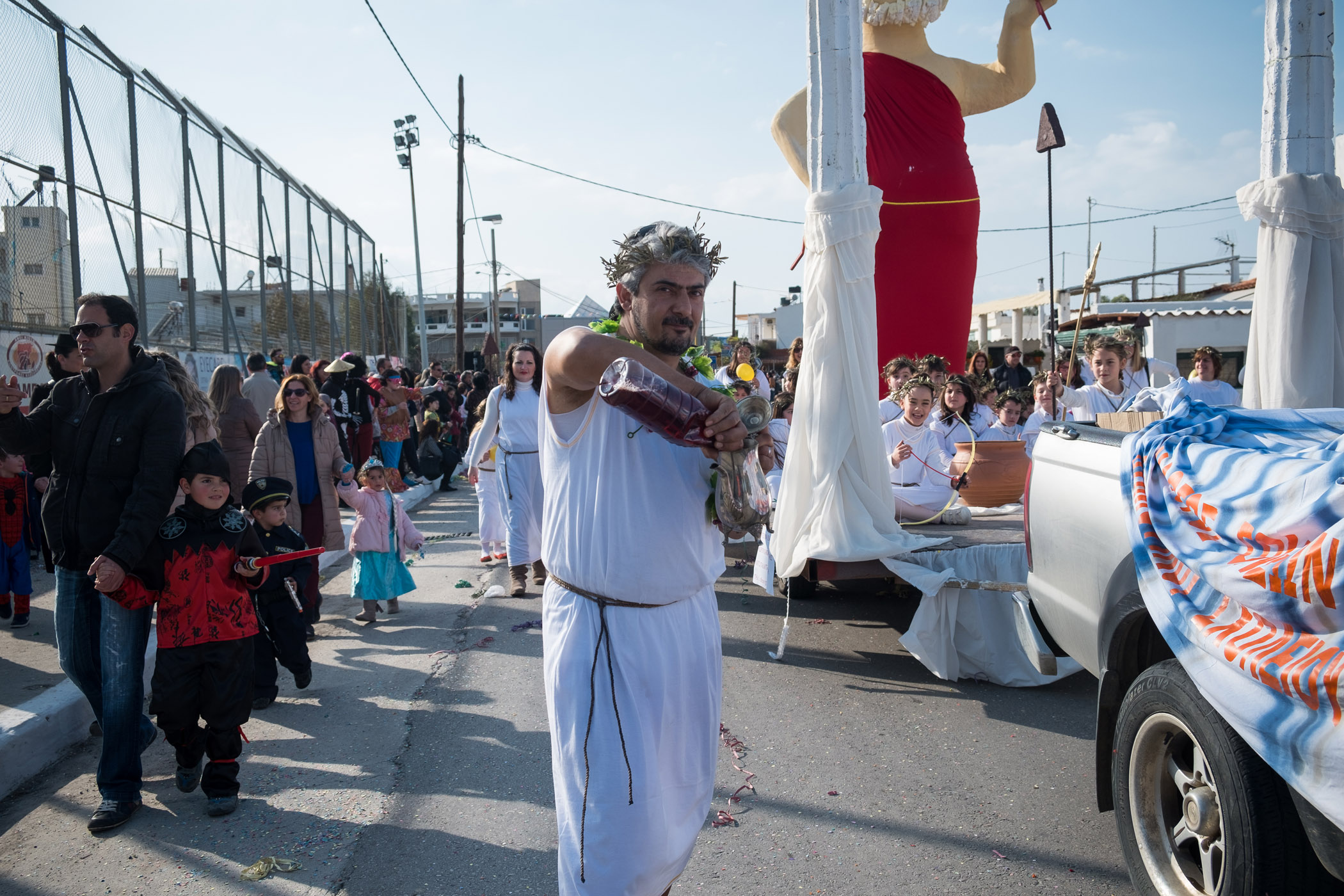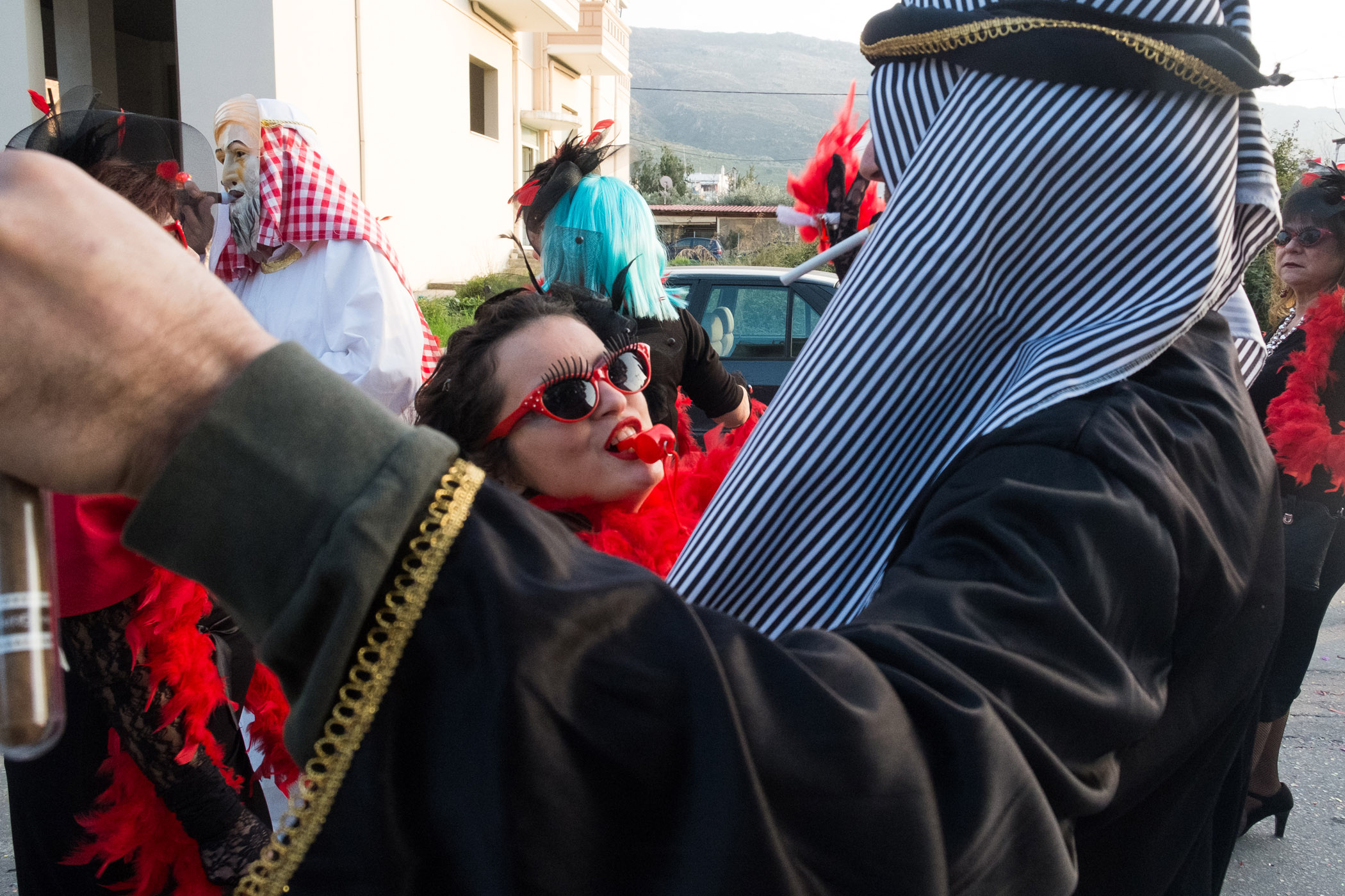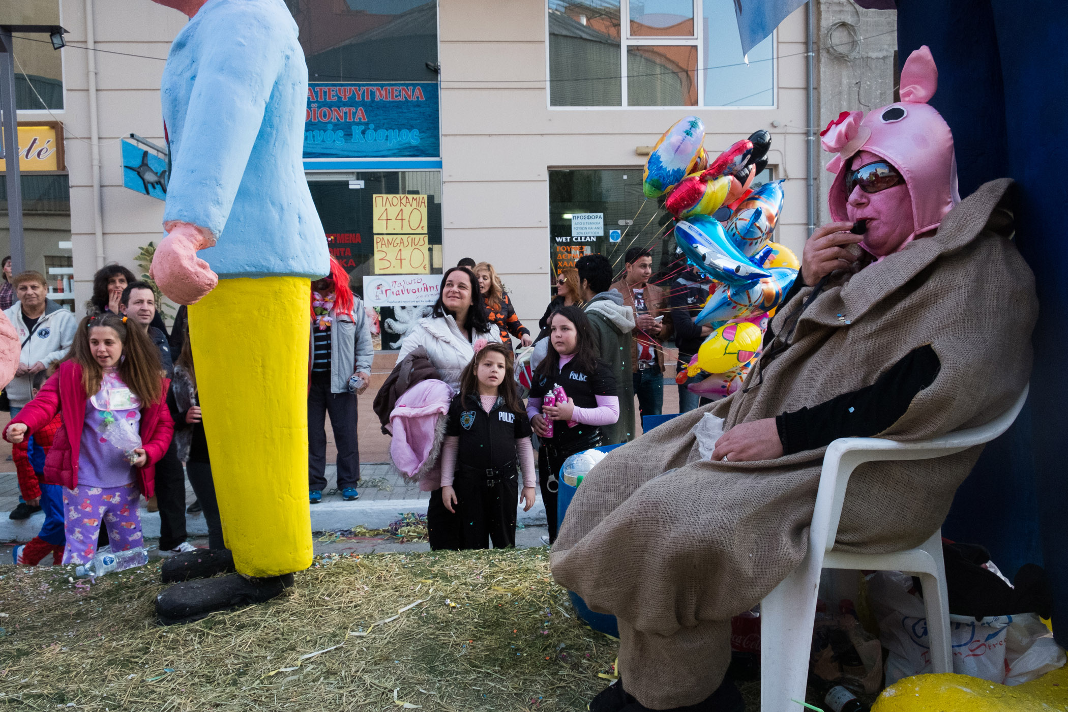 Αρκετά αργότερα, και μετά τις 5, η παρέλαση τελείωσε. Όμως η γιορτή συνεχίστηκε, με τους καρναβαλιστές να παραμένουν στην πλατεία της Σούδας, να πίνουν, να τρώνε και να χορεύουν.
