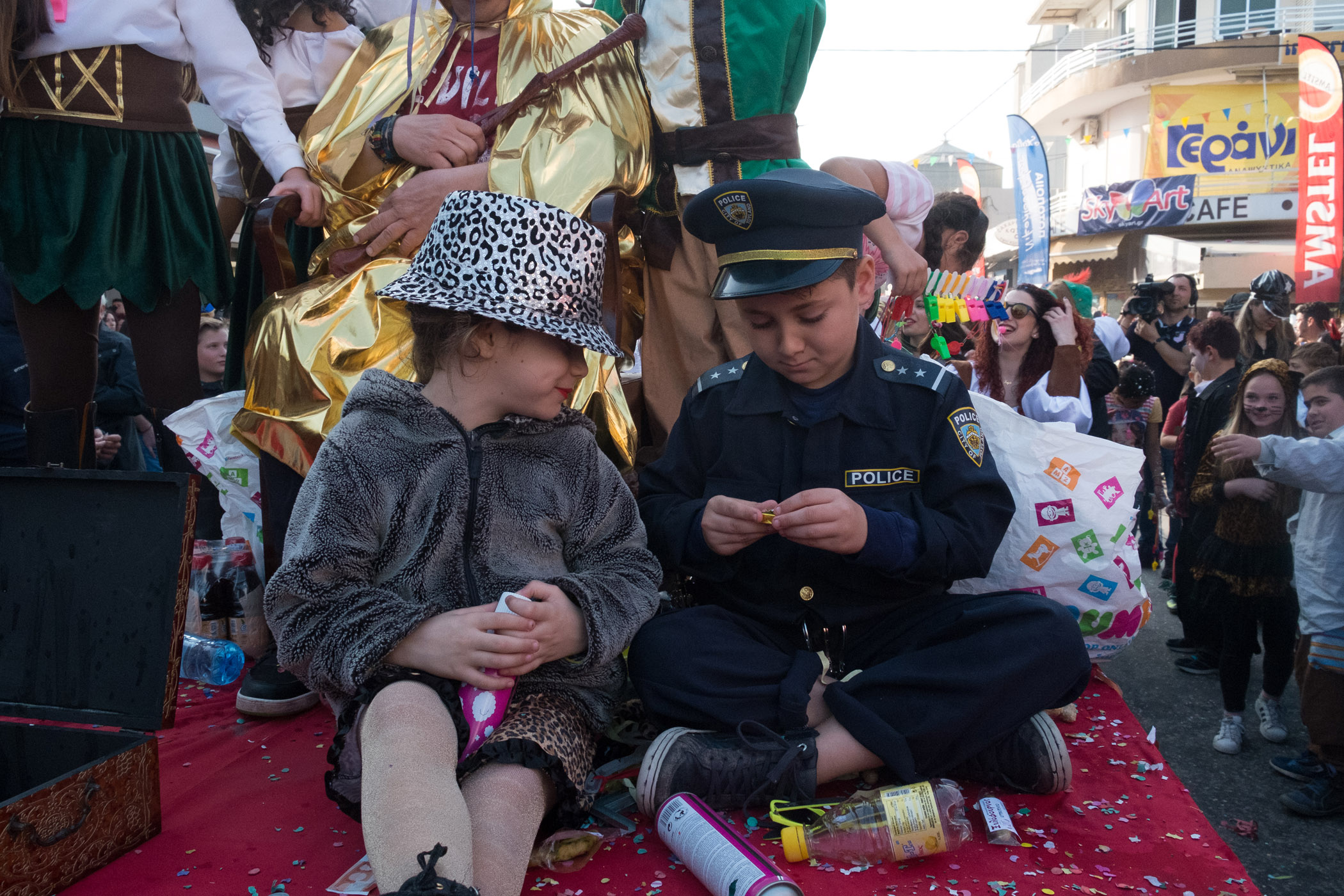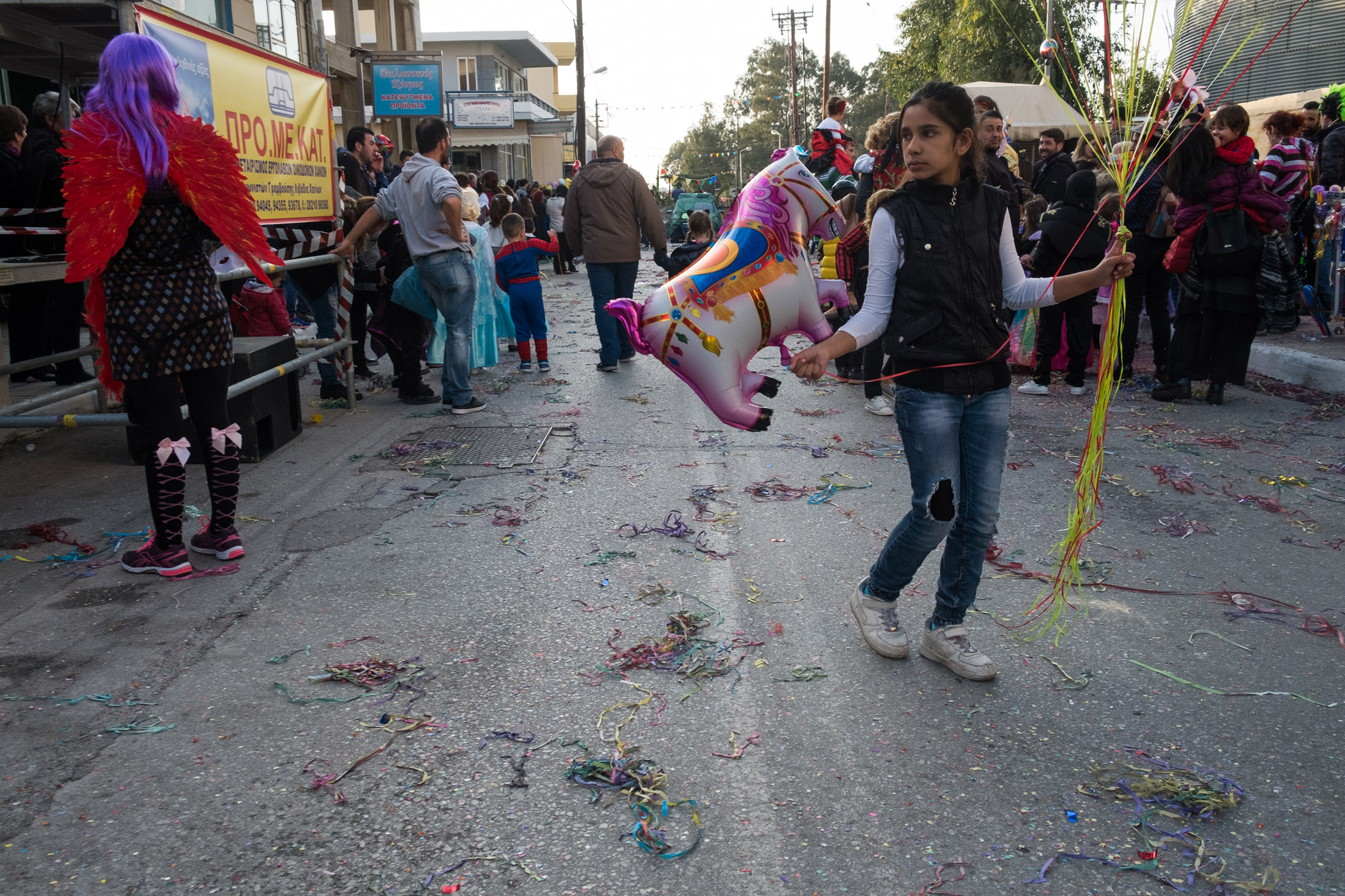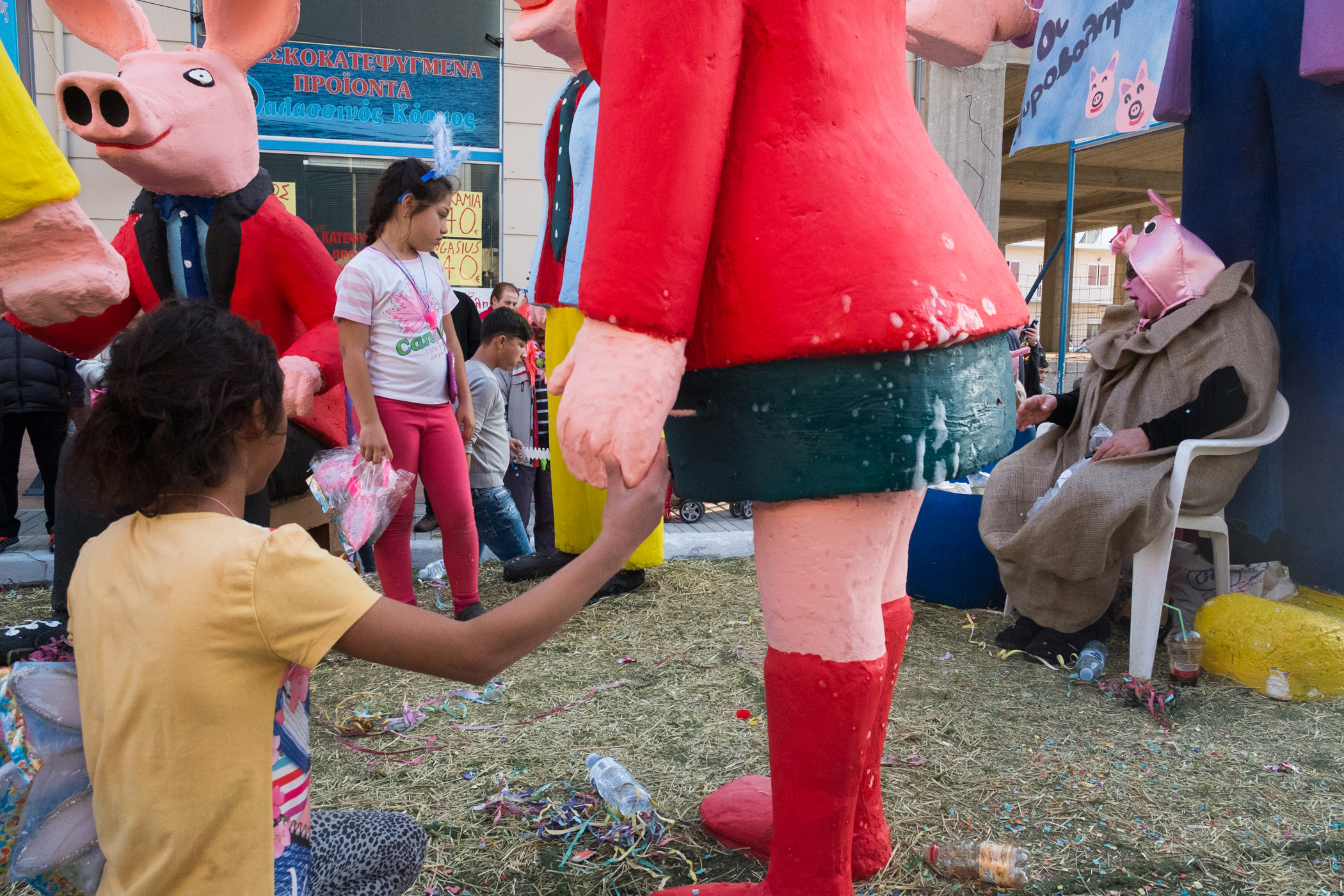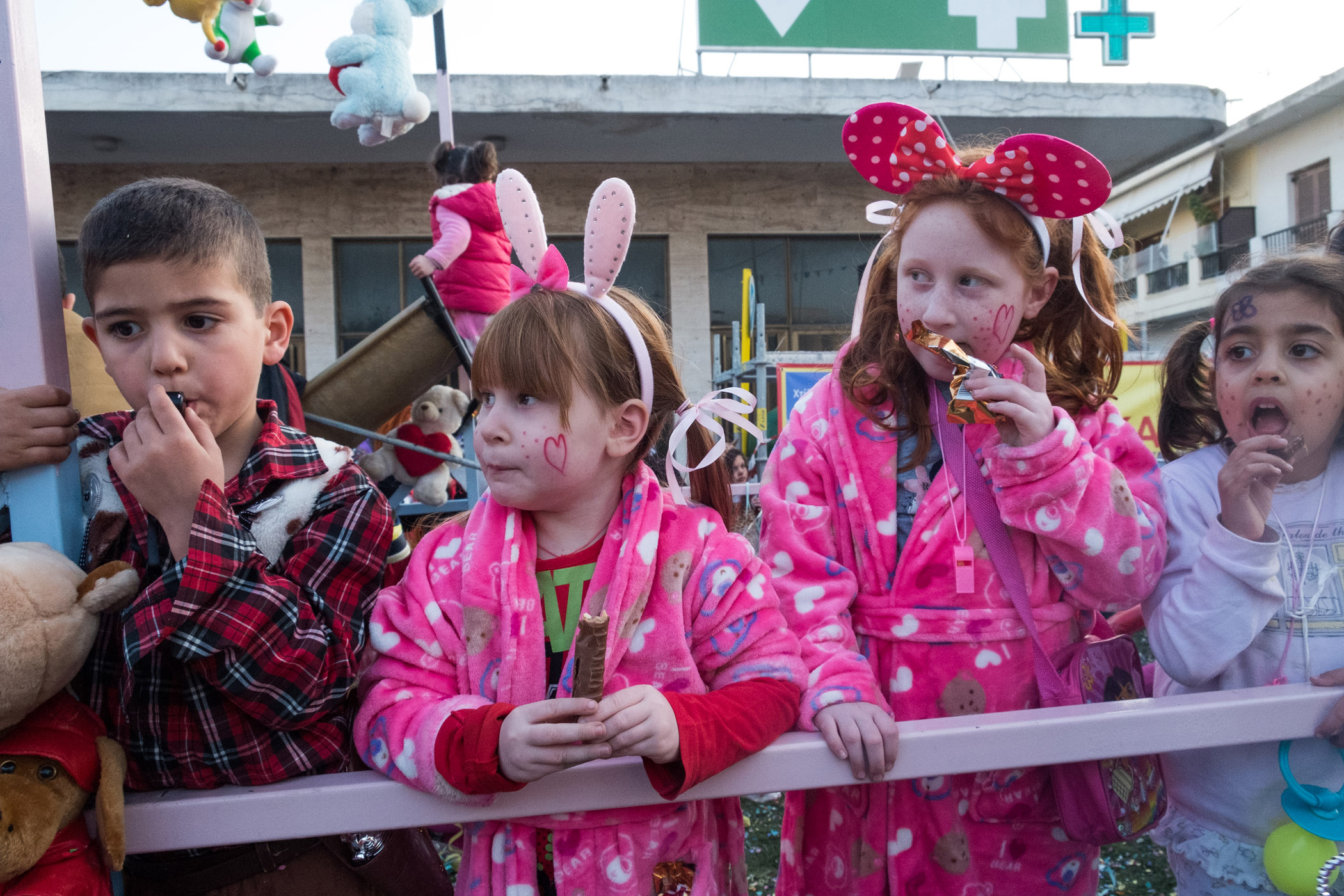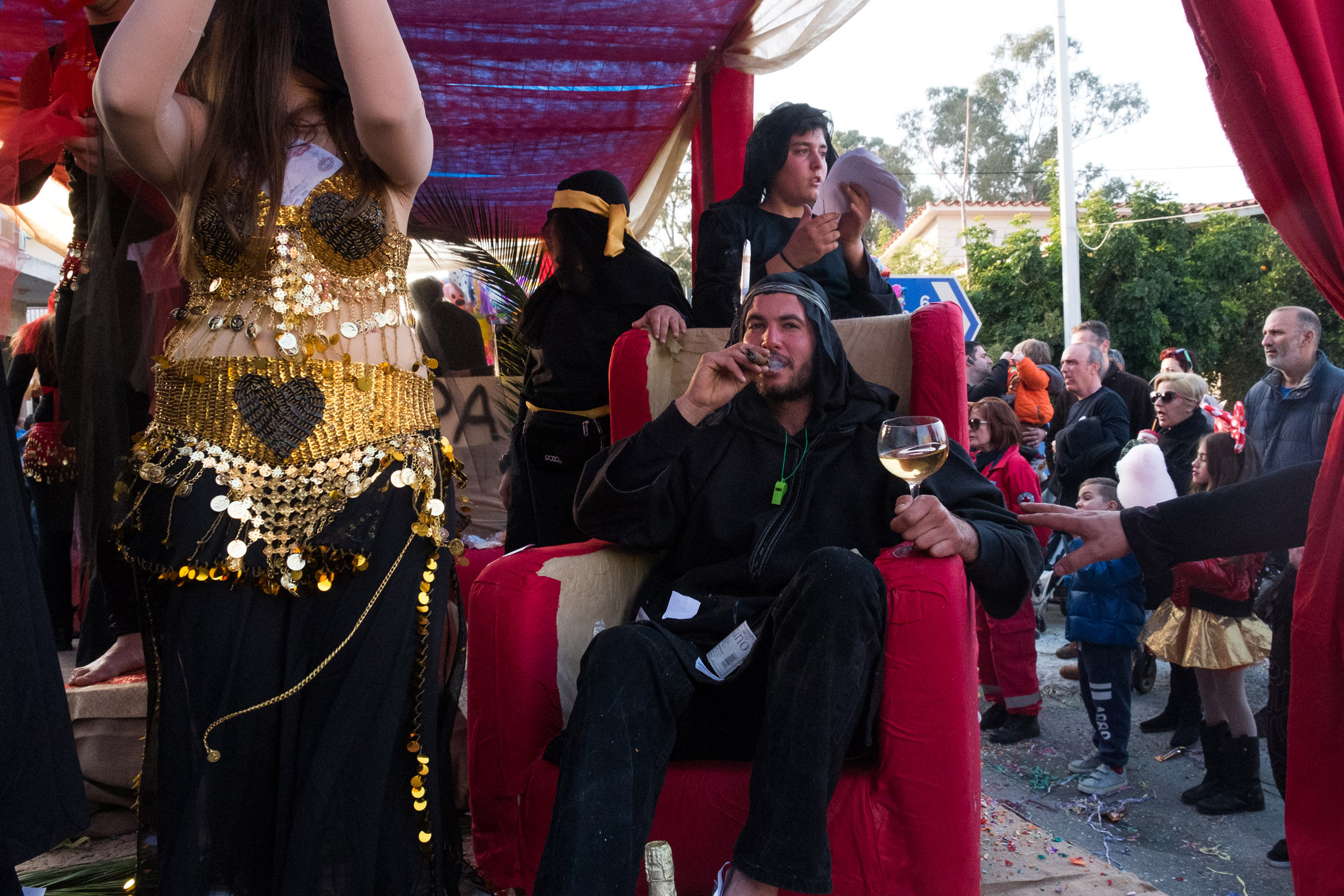 Αρκετά αργότερα, και μετά τις 5, η παρέλαση τελείωσε. Όμως η γιορτή συνεχίστηκε, με τους καρναβαλιστές να παραμένουν στην πλατεία της Σούδας, να πίνουν, να τρώνε και να χορεύουν.