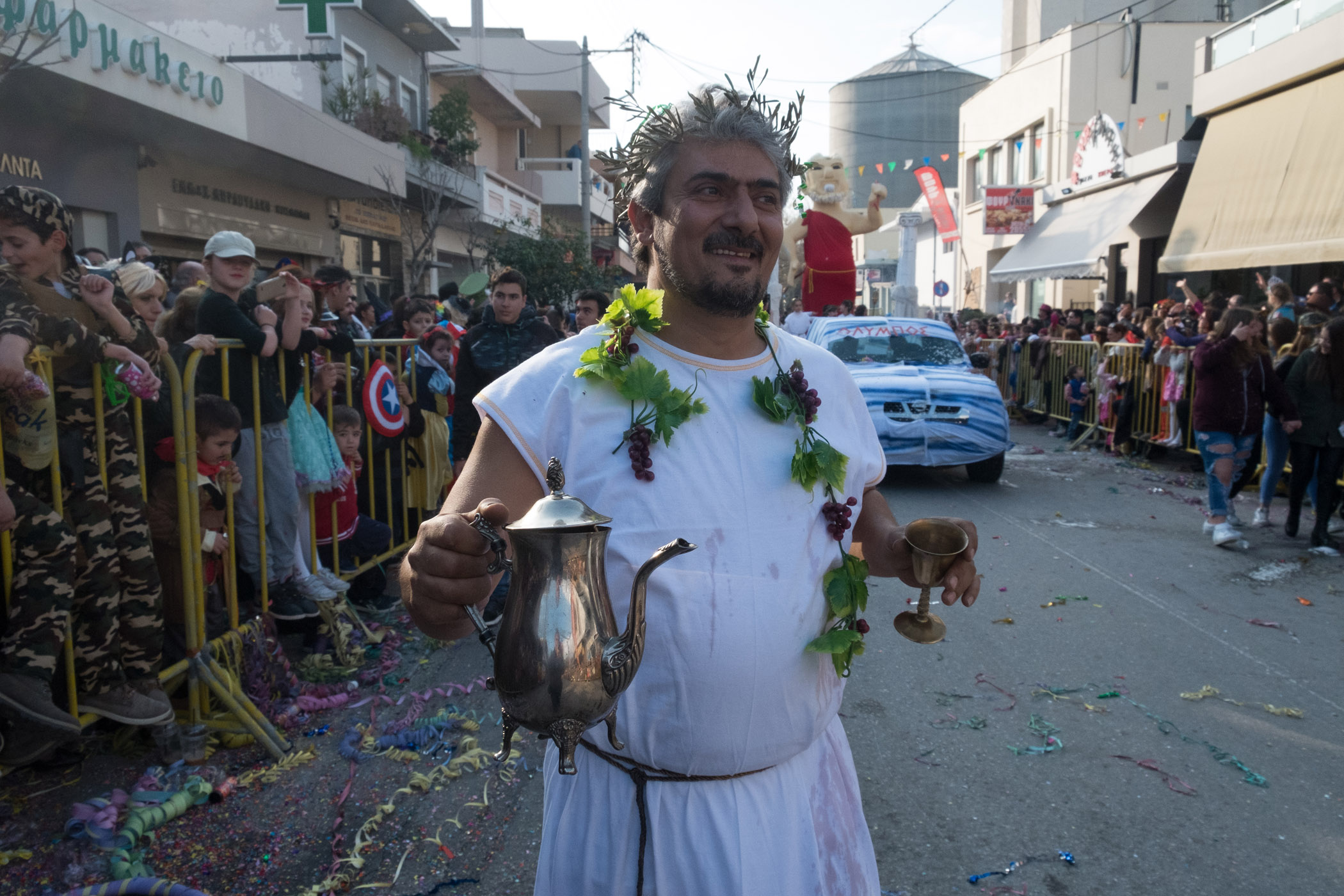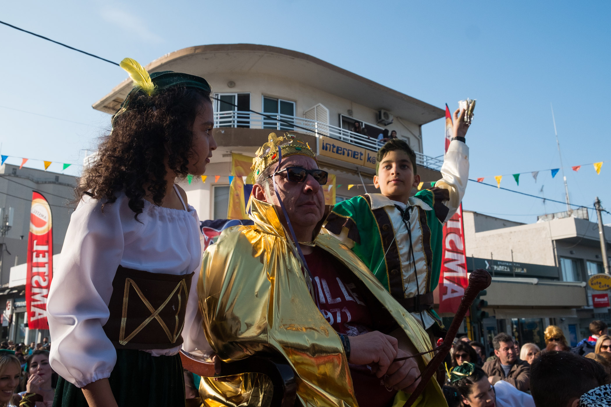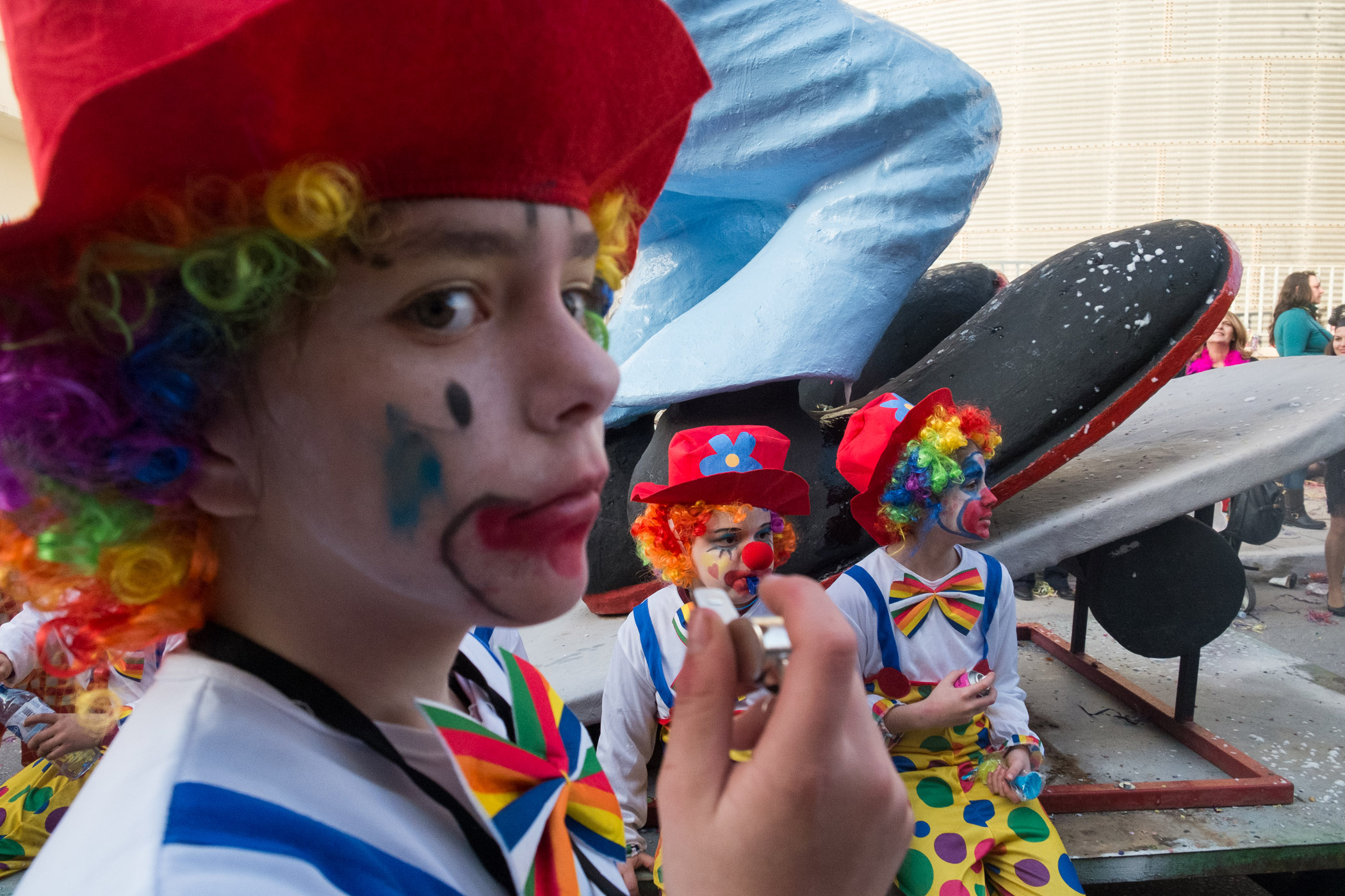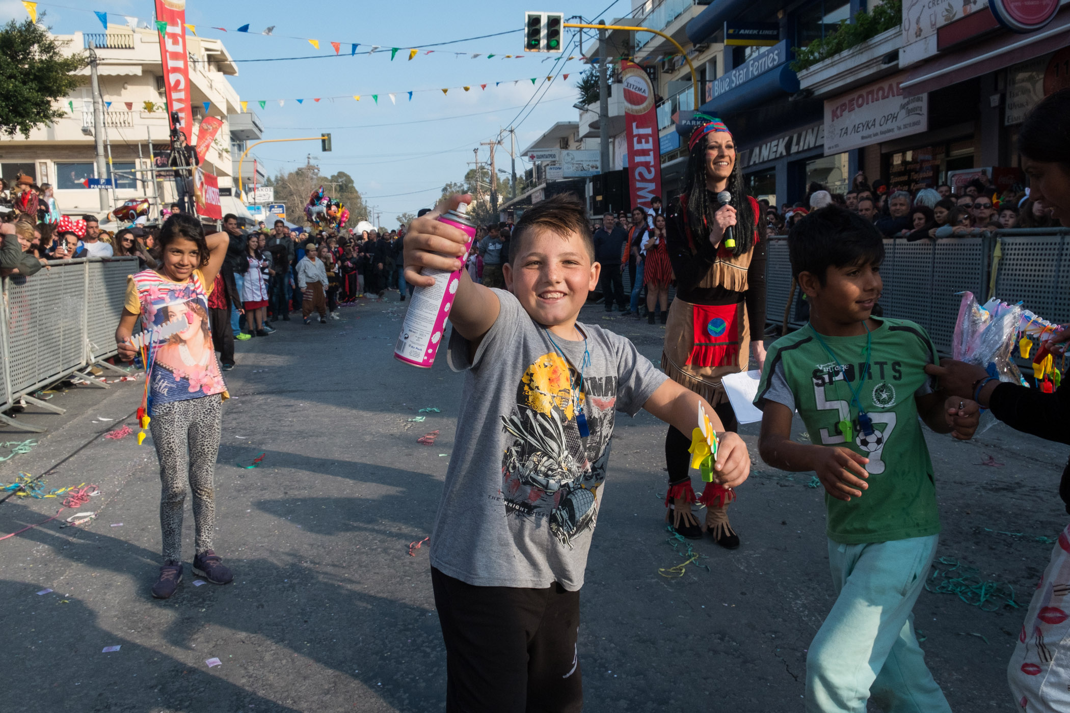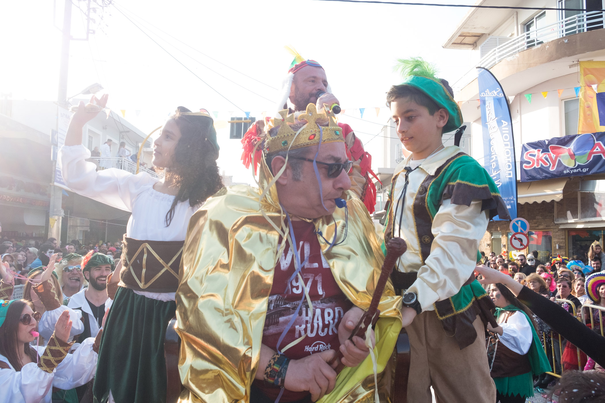 Χιλιάδες, μικροί και μεγάλοι σε ηλικία, μεταμφιεσμένοι ή μη, περίμεναν από τις 3 το μεσημέρι να ξεκινήσει η παρέλαση των αρμάτων.