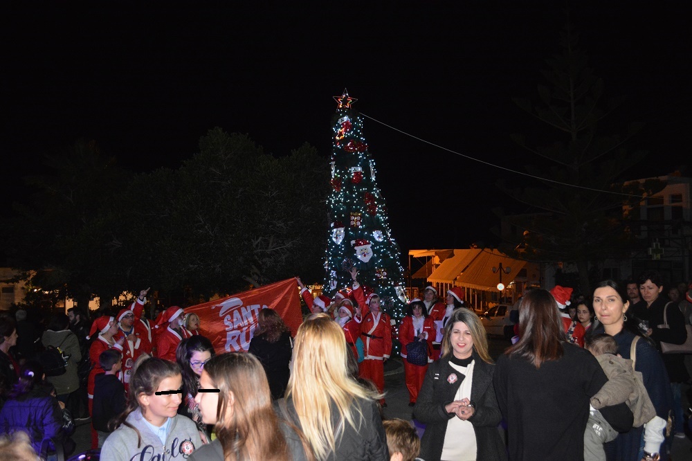 Η βραδιά ξεκίνησε με την ομάδα των Άη Βασίληδων του Santa Run, όπου έφτασαν στην κεντρική πλατεία με σφυρίχτρες και σημαίες και έδωσαν χρώμα, αλλά και το έναυσμα για την εκκίνηση της εκδήλωσης (βίντεο: http://bit.ly/2B5A8gr).