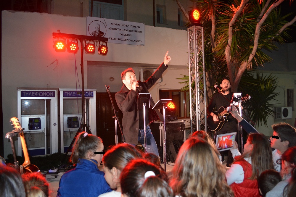 Λίγη ώρα μετά, στο διάλλειμα, πήρε το μικρόφωνο ο Δήμαρχος Σφακίων κ. Γιάννης Ζερβός, όπου καλωσόρισε τους παρευρισκόμενους, την ομάδα των Αη Βασίληδων του Santa Run, τους Καλλιτέχνες, καθώς και ευχαρίστησε το μεγάλο χορηγό της εκδήλωσης, την οικογένεια Βαρδινογιάννη και την MOTOR OIL. Στην εκδήλωση συμμετείχαν και μέλη του Συλλόγου «Ορίζοντα», όπου έκαναν συλλογή δειγμάτων από εθελοντές δότες μυελού των οστών, τους οποίους επίσης ευχαρίστησε ο κ. Γ. Ζερβός, ενώ προέτρεψε τον κόσμο να συμμετάσχει στην δράση (βίντεο Γ. Ζερβός http://bit.ly/2BU9cxm).