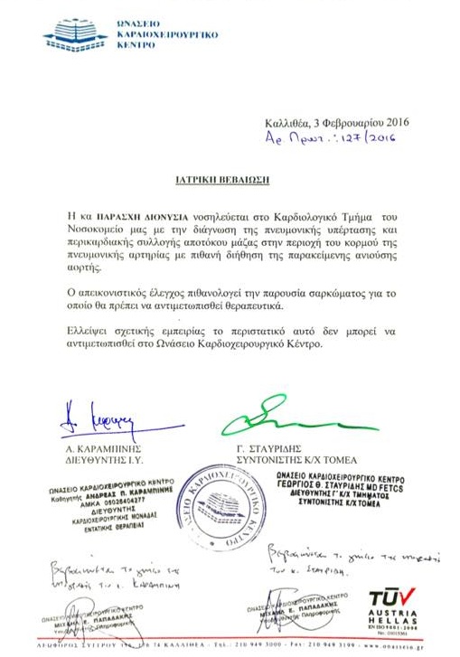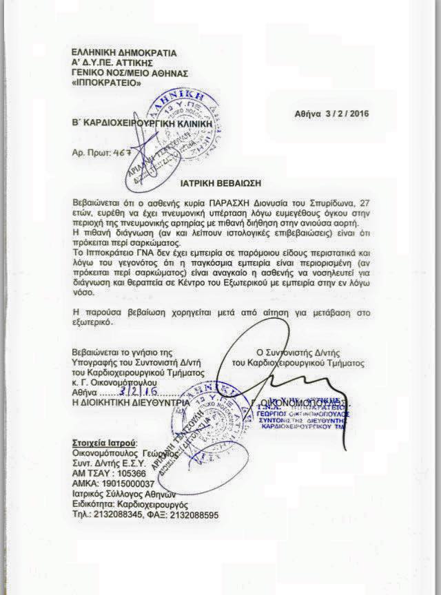 Η Διονυσία (Ντένια όπως την ξέρουν οι φίλοι της), κόρη του Σπύρου Παράσχη (συνταξιούχου του ΟΤΕ Ζακύνθου) διαγνώστηκε με πολύ σπάνια μορφή καρκίνου στην καρδιά.