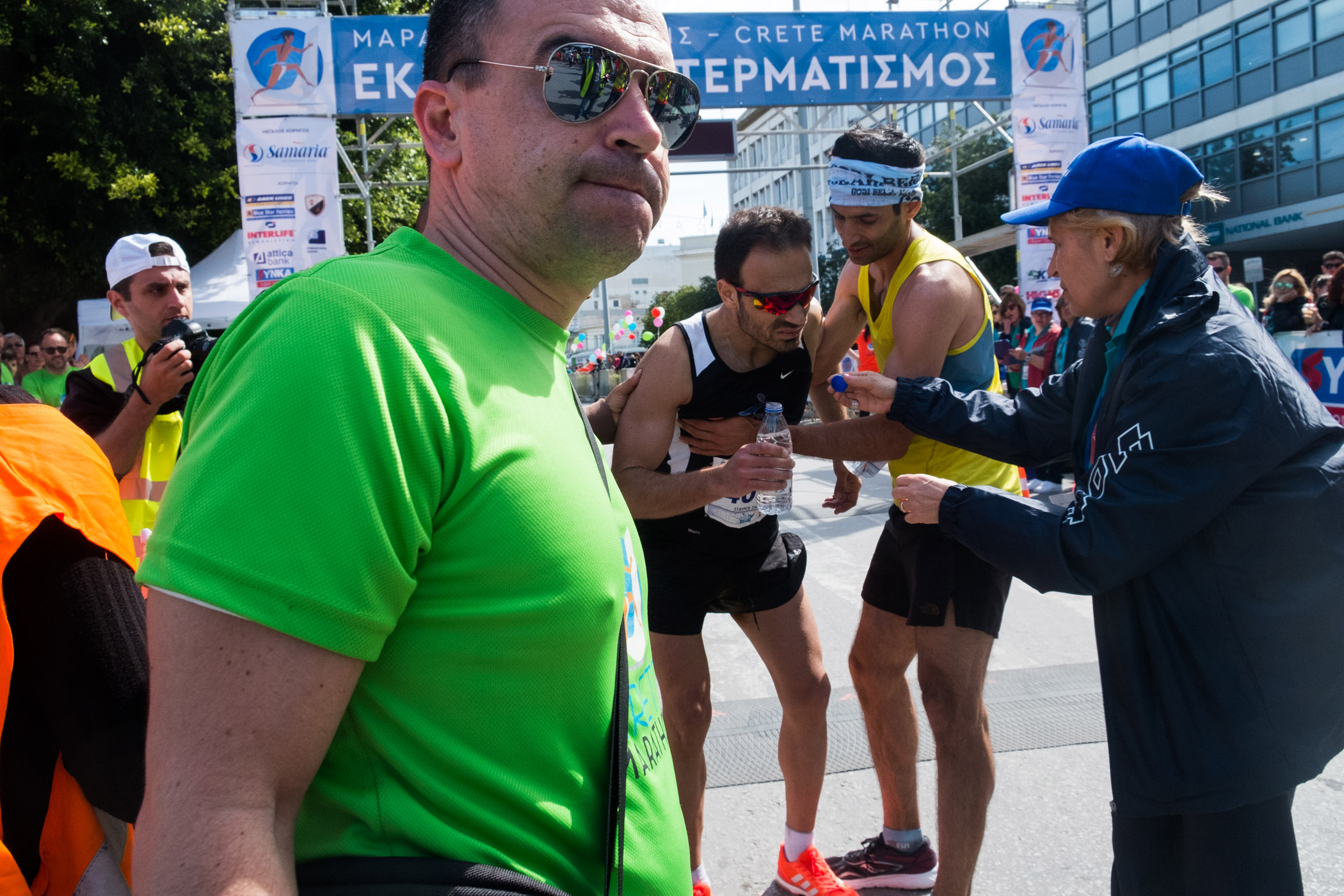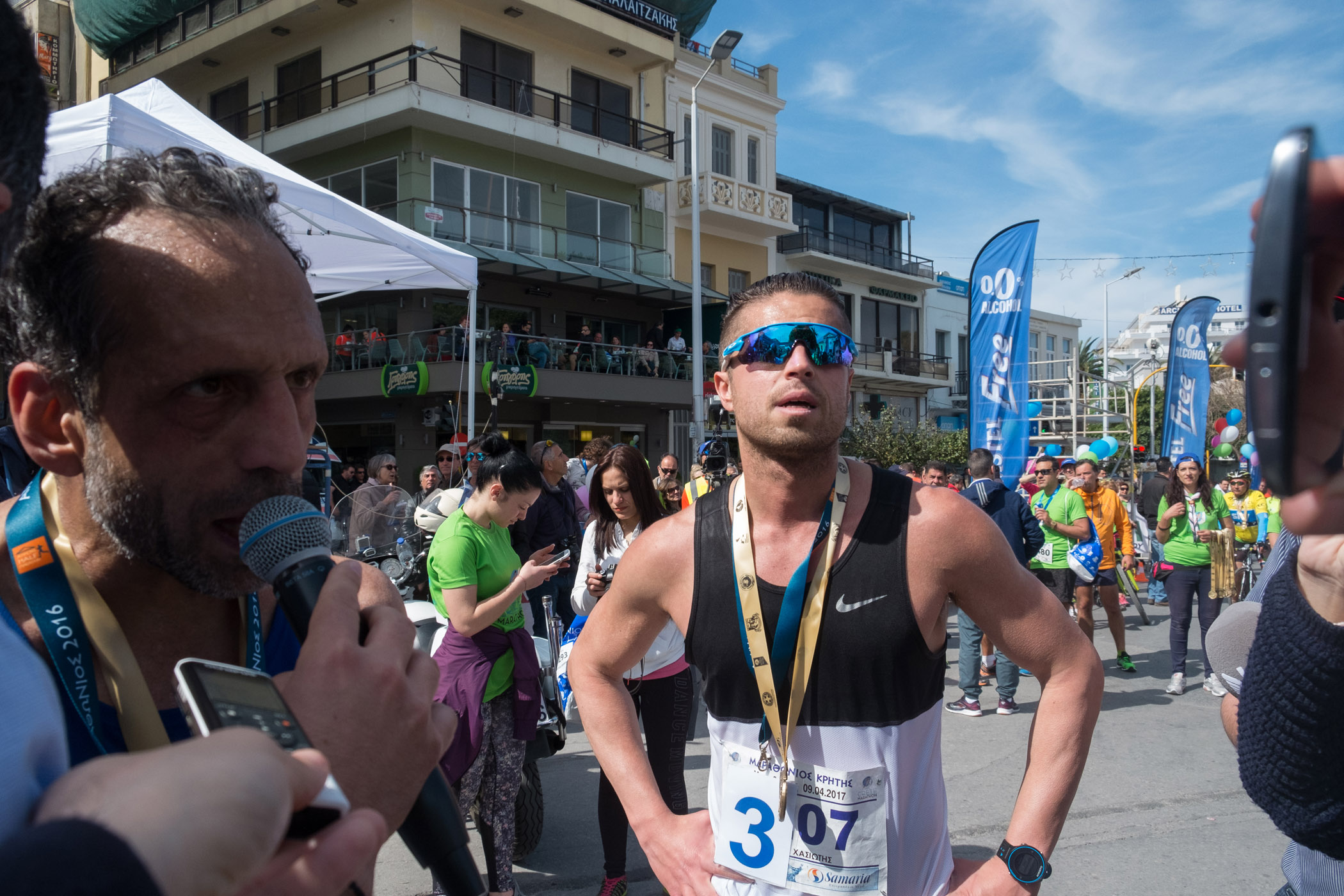 “Ευχαριστώ πολύ τον προπονητή μου. Μαζί βγάλαμε τον αγώνα. Ότι έχω κάνει σε επιδόσεις, μαζί το πετυχαίνουμε. Ευχαριστώ και τη γυναίκα μου για τη στήριξη που μου δίνει. Κάθεται στο μαγαζί και βγάζει λεφτά κι εγώ τρέχω. Ευχαριστώ όλα τα Χανιά και τους Χανιώτες. Είναι πολύ οργανωμένοι και συνειδητοποιημένοι όσοι ασχολούνται με τον Μαραθώνιο Κρήτης, εξελίσσεται κάθε χρόνο και νομίζω ότι του χρόνου θα είναι ακόμα πιο καλά. Θέλω να κάνω αυτό τον αγώνα για πολλά χρόνια κι ας είμαι και τελευταίος. Όπως λέει και μια παροιμία “Στο μετερίζι τσ’ ανθρωπιάς και στης τιμής το χρέος εκεί θα στέκω να πατώ κι ας είμαι ο τελευταίος”.