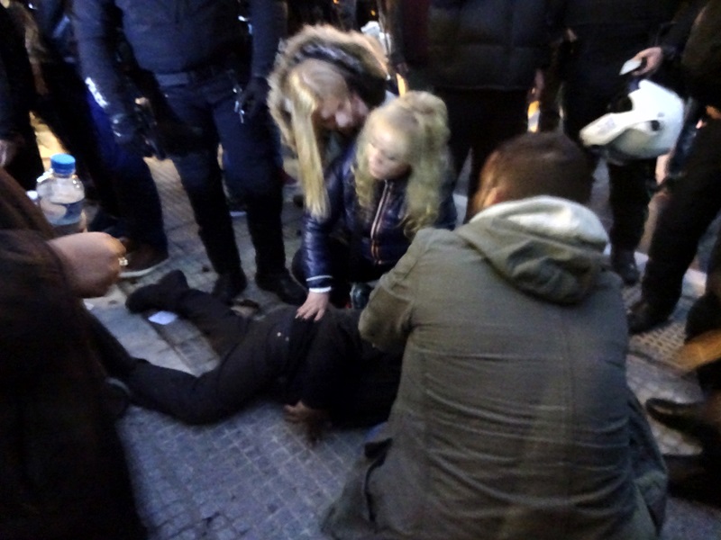 Ο ίδιος αντέδρασε έντονα και λόγω της έντασης και της ηλικίας του έχασε τις αισθήσεις του. Το πλήθος που κοιτούσε το περιστατικό αποσβολωμένο, έσπευσε αμέσως πάνω από τον ηλικιωμένο για να του προσφέρει τις πρώτες βοήθειες.