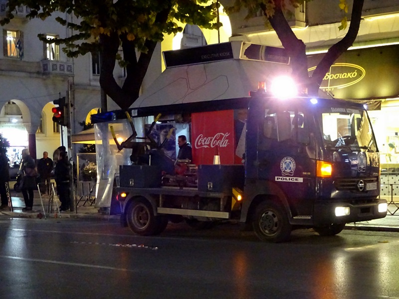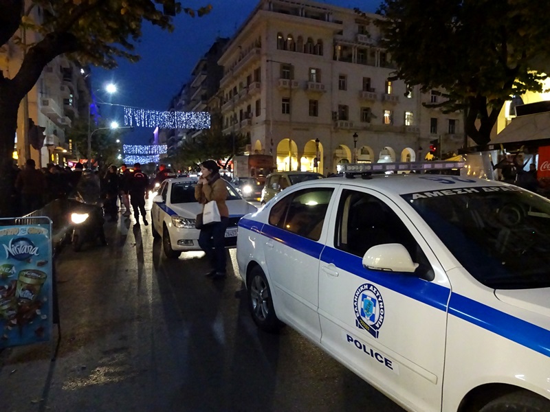 Επτά αστυνομικοί με κράνη, μετέβησαν στην γωνία Τσιμισκή και Αριστοτέλους όπου βρισκόταν με το καρότσι του ηλικιωμένος καστανάς.