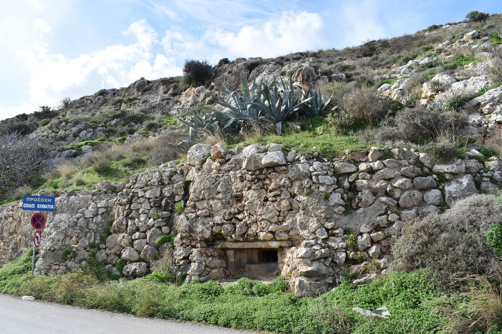 Το κτίσμα, μέσα στο βράχο, διαθέτει τρεις τουλάχιστον αίθουσες που συνδέονται μεταξύ τους με μικρούς διαδρόμους αλλά και πολυβολείο στο ύψος του κεντρικού δρόμου.