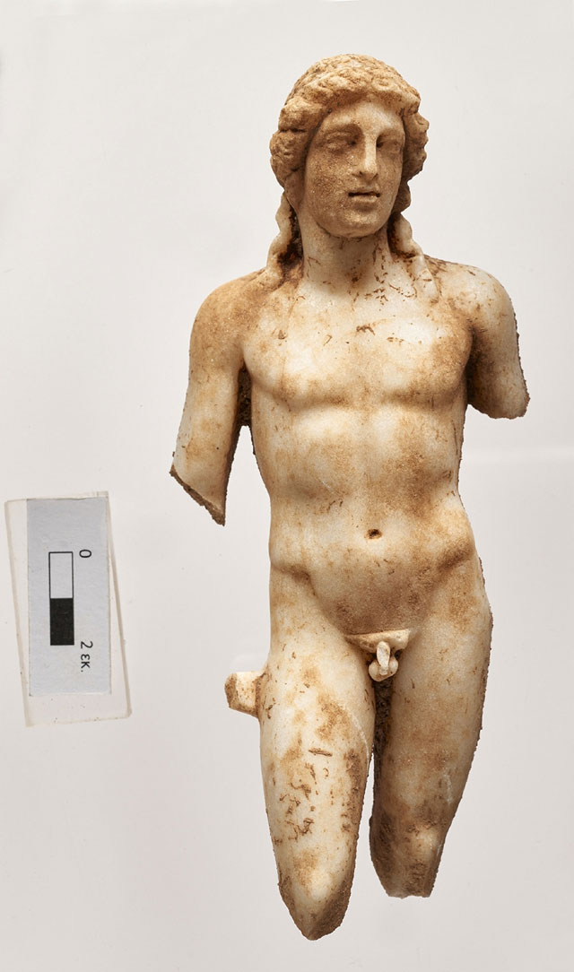 Ωστόσο, και το γλυπτό αυτό είναι έργο πολύ καλής εκτέλεσης, με σπάνια διατήρηση της ερυθρής βαφής στο στήριγμά του.