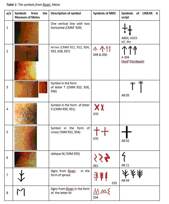 Τα παραπάνω επισημαίνουν σε δημοσίευσή τους ο ερευνητής Αιγαιακών γραφών δρ Μηνάς Τσικριτσής και ο καθηγητής Αρχαιολογίας Αδαμάντιος Σάμψων στο αμερικάνικο επιστημονικό περιοδικό «Annals of Archaeology» στον ιστότοπο Academia.edu και στο ResearchGate με τίτλο: «Symbols of Minoan Hieroglyphic Script and Linear A in Melos from the Middle of 3rd Millennium BC».