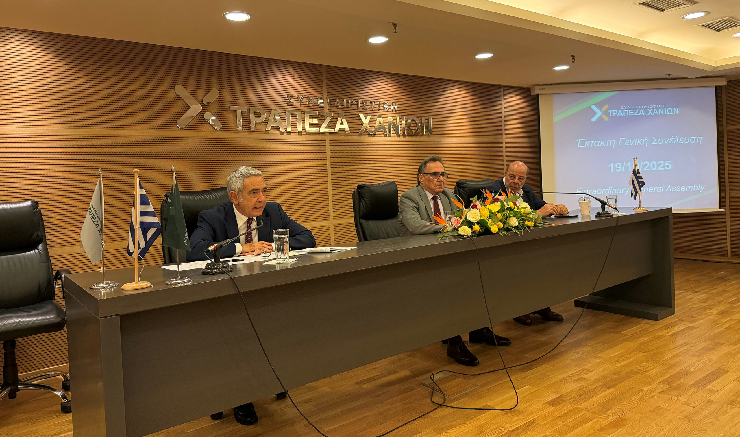 Με μεγάλη συμμετοχή των συνεταίρων και σαφή ανανέωση προσώπων και εμπιστοσύνης προς τη διοίκηση, πραγματοποιήθηκε η Έκτακτη Γενική Συνέλευση της Συνεταιριστικής Τράπεζας Χανίων, η οποία ανέδειξε το νέο Διοικητικό Συμβούλιο του οργανισμού.