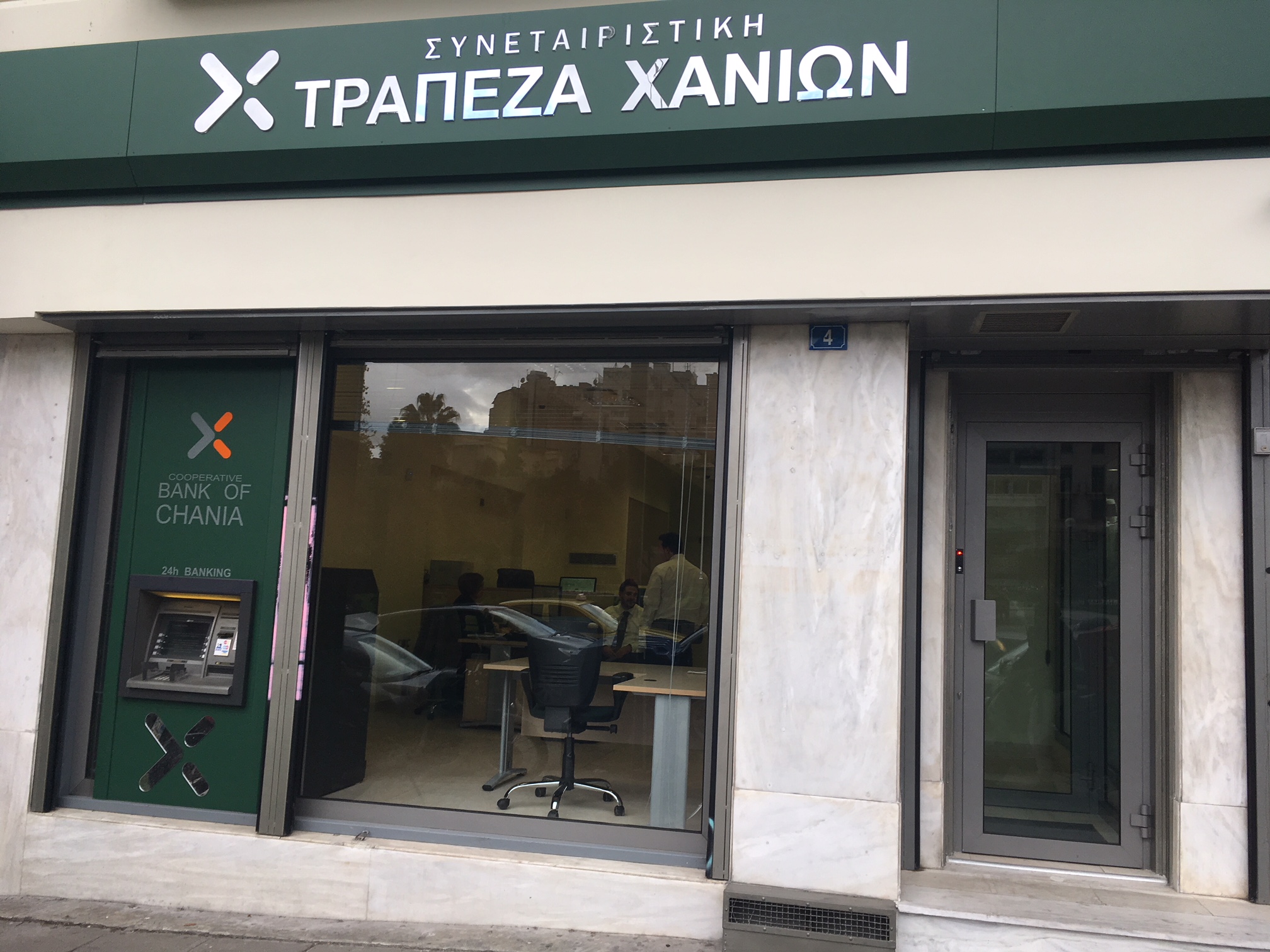 Στο πλαίσιο αναδιάρθρωσης του δικτύου των καταστημάτων της, η Συνεταιριστική Τράπεζα Χανίων ανακοινώνει την έναρξη λειτουργίας ενός νέου καταστήματος στο λεκανοπέδιο της Αττικής και πιο συγκεκριμένα στην οδό Δραγατσανίου 4. Η έναρξη των εργασιών έγινε σήμερα, Δευτέρα 27 Νοεμβρίου 2017.