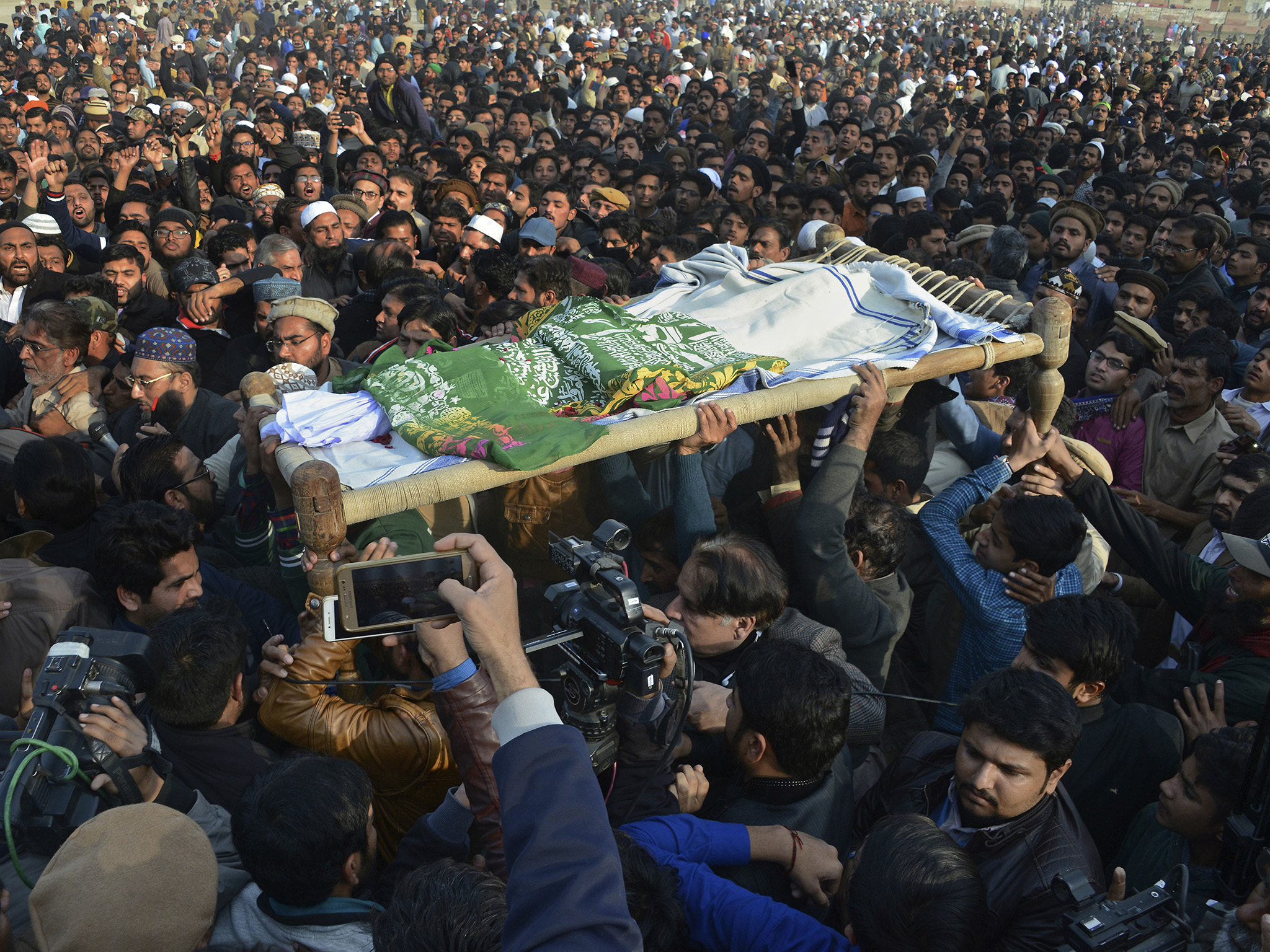 Το δικαστήριο τον καταδίκασε τετράκις εις θάνατον: μία για την απαγωγή του κοριτσιού, άλλη μία για τον βιασμό, την τρίτη για τη δολοφονία και την τέταρτη «για άλλα τρομοκρατικά αδικήματα», όπως είπε στους δημοσιογράφους ο γενικός εισαγγελέας της επαρχίας Παντζάμπ, Ιχτεσάμ Καντίρ.