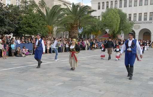 Με κάθε επισημότητα και λαμπρότητα γιορτάστηκε και φέτος στην Ερμούπολη Σύρου, η επέτειος της 28ης Οκτωβρίου. Παρουσία εκπροσώπων της θρησκευτικής, πολιτικής και στρατιωτικής ηγεσίας του τόπου και πλήθος κόσμου κορυφώθηκαν οι εορταστικές εκδηλώσεις, με την καθιερωμένη παρέλαση σχολείων Α/θμιας και Β/θμιας εκπαίδευσης, καθώς επίσης και μελών σωματείων και πολιτιστικών συλλόγων, στην Πλατεία Μιαούλη.