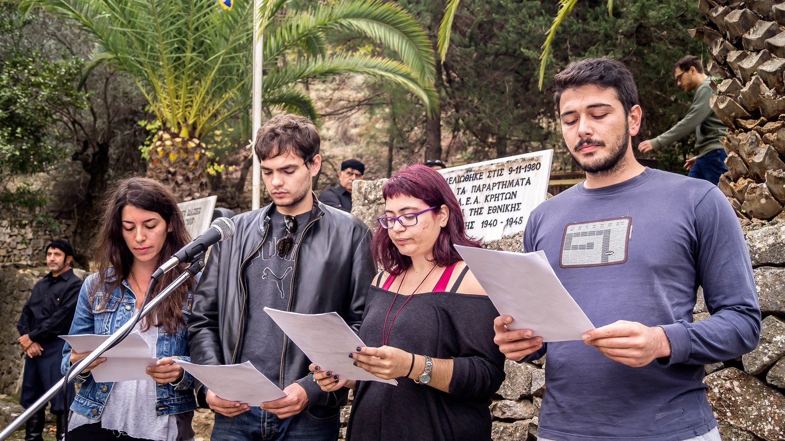 Ακολούθως πραγματοποιήθηκε θεατρικό δρώμενο από τη θεατρική ομάδα της ΚΝΕ, αφιερωμένο στη μάχη, καθώς και από ριζίτικα τραγούδια από το συγκρότημα Κρητικές Μαδάρες ενώ έκλεισε με κατάθεση στεφάνων από φορείς και με προσκλητήριο νεκρών.