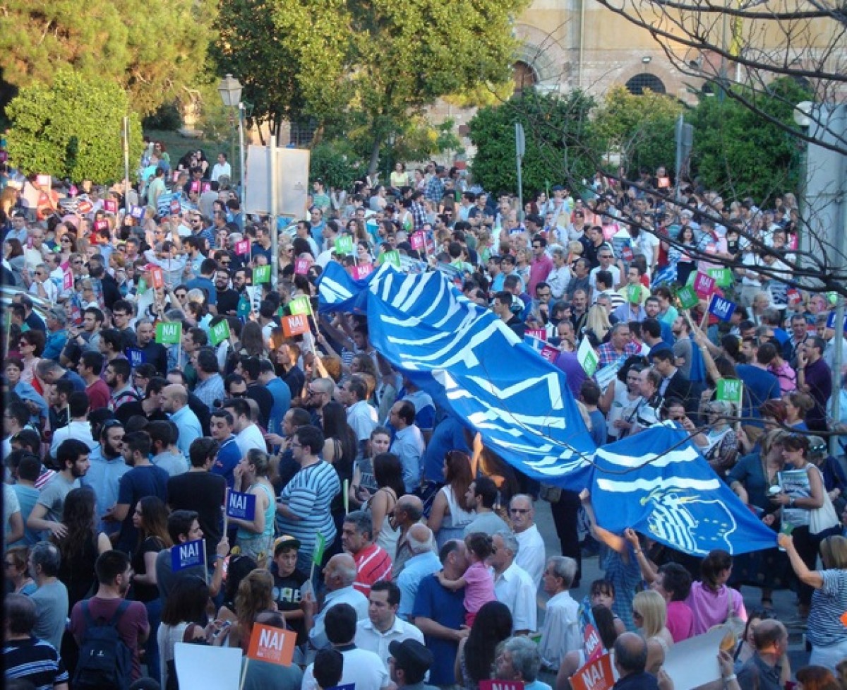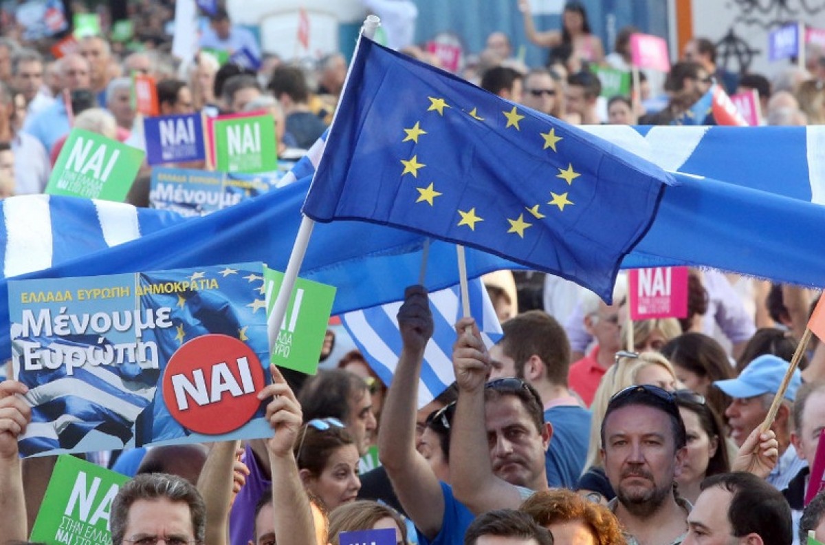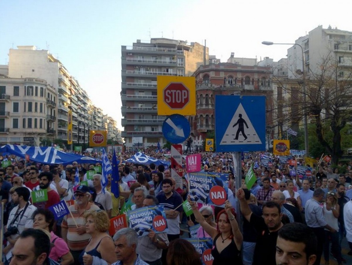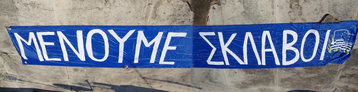Ένα απίστευτο γεγονός συνέβη την Πέμπτη 2 Ιουλίου κατά τη διαδήλωση στην πλατεία Αγίας Σοφίας στη Θεσσαλονίκη, των “Μένουμε Ευρώπη” που τάσσονται υπέρ του ΝΑΙ στο δημοψήφισμα της Κυριακής. Αναρχικοί αφού ντύθηκαν με “γιάπικη αμφίεση” παρείσφρησαν στη συγκέντρωση και προέτρεψαν τους παρευρισκόμενους να κρατήσουν ένα τεράστιο πανό από τα κεφάλια τους που έγραφε “Μένουμε Σκλάβοι”. Όπως σημειώνουν: “Η δράση αυτη ξεπέρασε κάθε προσδοκία αφού μετά την αποχώρηση μας, το πανό έμεινε αναρτημένο για πάνω από 20 λεπτά και καταχειροκτροτήθηκε με πάθος από τα φιλοευρωπαικά ζόμπι”.