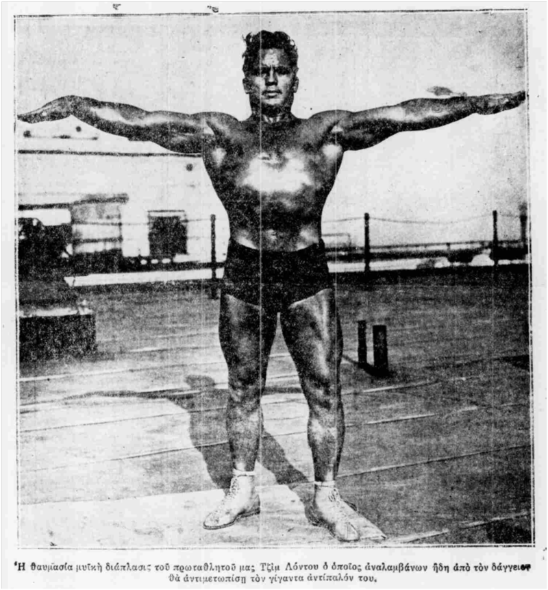 Ο Τζιμ Λόντος είχε ανακηρυχτεί από την Ομοσπονδία Πάλης της Πολιτείας της Νέας Υόρκης παγκόσμιος πρωταθλητής. Οι Έλληνες τον είχαν απολαύσει στο καλλιμάρμαρο Παναθηναϊκό Στάδιο, όταν ερχόταν κατά καιρούς για να κατατροπώσει τον Κβαριάνι, τον Μεχμέτ Αλή, τον Βάντερβαλντ, ενώ το 1959 (στα 64 χρόνια του!) διέλυσε κάποιον Άγγλο 30άρη παλαιστή.