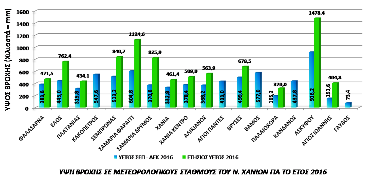 Αδιαμφισβήτητα το υδρολογικό έτος  Σεπτέμβριος  2015 – Ιούλιος 2016 ήταν από τα χειρότερα έτη σε απόδοση βροχομετρικών και κατατάχθηκε 3ο  κατά σειρά,  σε σχέση με τα κλιματολογικά στοιχεία του αεροδρομίου Σούδας,  όπου τηρείται πλήρες αρχείο από το 1959.