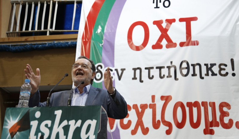 Ηγετική εμφάνιση ενώπιον βουλευτών του ΣΥΡΙΖΑ και πλήθους κόσμου έκανε ο Παναγιώτης Λαφαζάνης στην εκδήλωση για τα πέντε χρόνια από την ίδρυση της ιστοσελίδας Iskra. Μίλησε ανοιχτά για επιστροφή στη δραχμή, εθνικοποίηση τραπεζών και ΔΕΚΟ και διεμήνυσε ότι δεν πρόκειται να στηρίξει τον μεταλλαγμένο ΣΥΡΙΖΑ του Αλέξη Τσίπρα.
