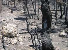 Στάχτη έγιναν συνολικά 300 ελαιόδεντρα και 35 στρέμματα γεωργικής και δασικής έκτασης εξαιτίας της μεγάλης πυρκαγιάς που ξέσπασε στις 3 το μεσημέρι της Πέμπτης.