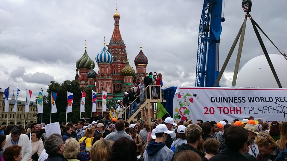 Στη Μόσχα η μεγαλύτερη χωριάτικη του κόσμου, στη Μόσχα. Ο Πέτρος Λαμπρινίδης, Έλληνας Σεφ από την Κρήτη, κατάφερε να φτιάξει μια ελληνική σαλάτα 20 τόνων και όπως διαβάζουμε στην ιστοσελίδα της Ακαδημίας Παγκοσμίων Ρεκόρ, κέρδισε το βραβείο της μεγαλύτερης Ελληνικής Σαλάτας στον κόσμο.